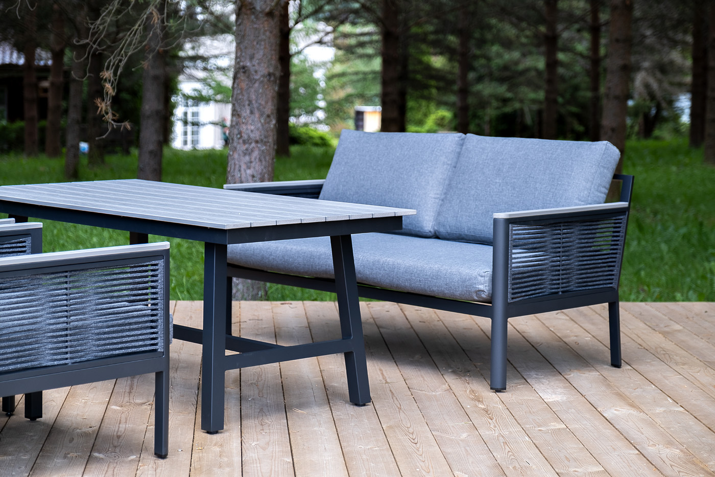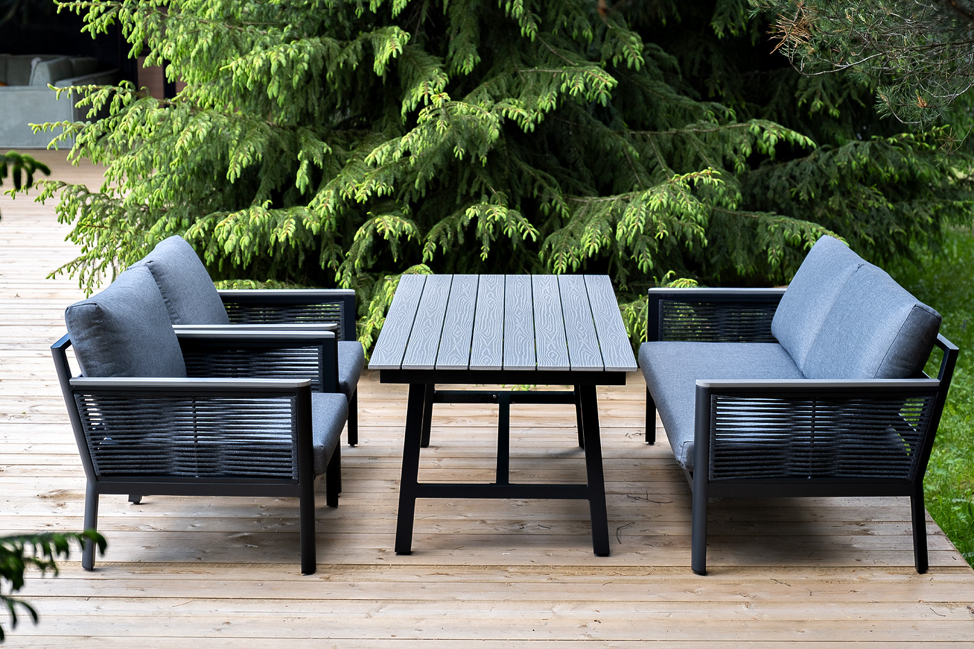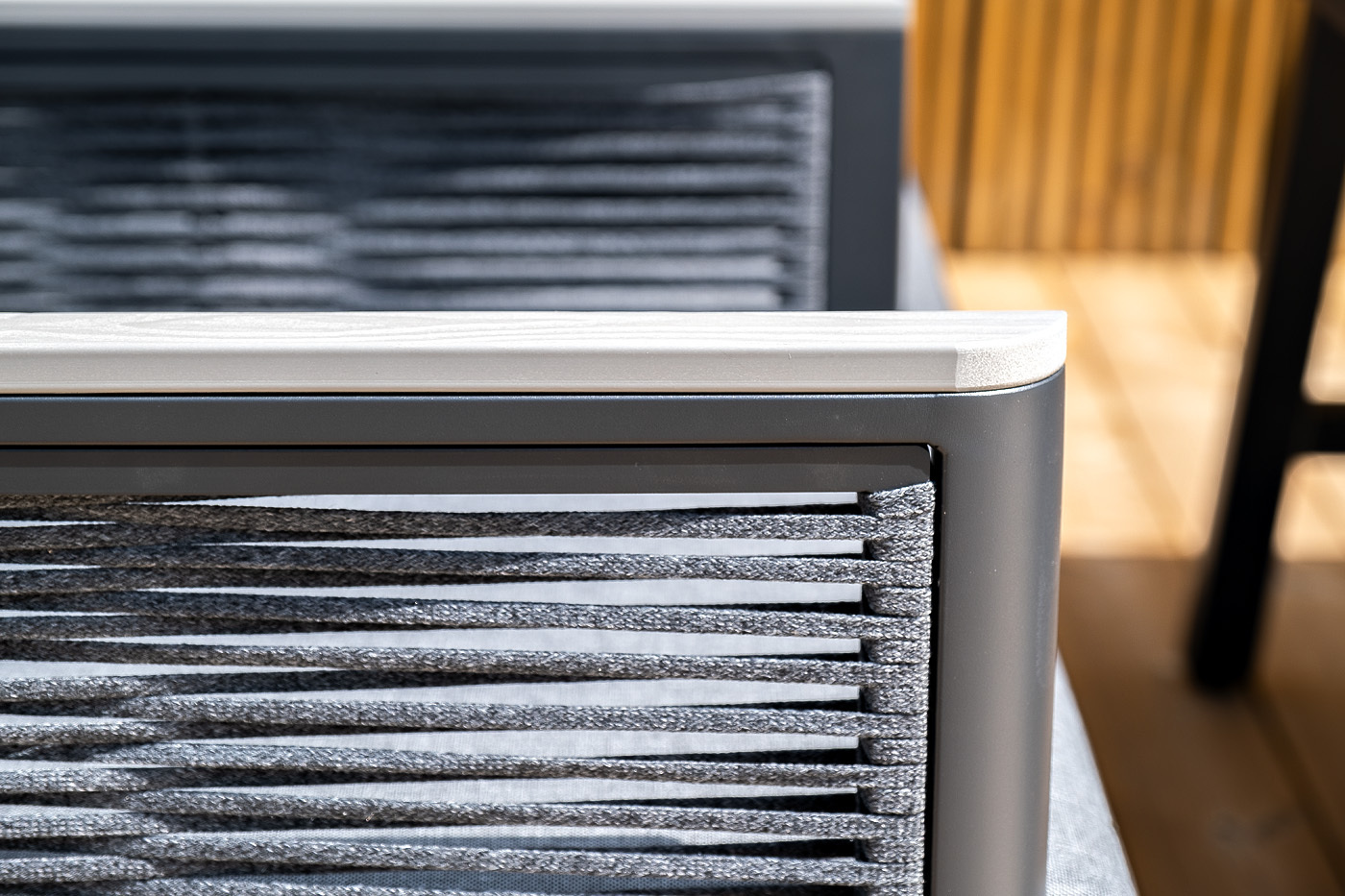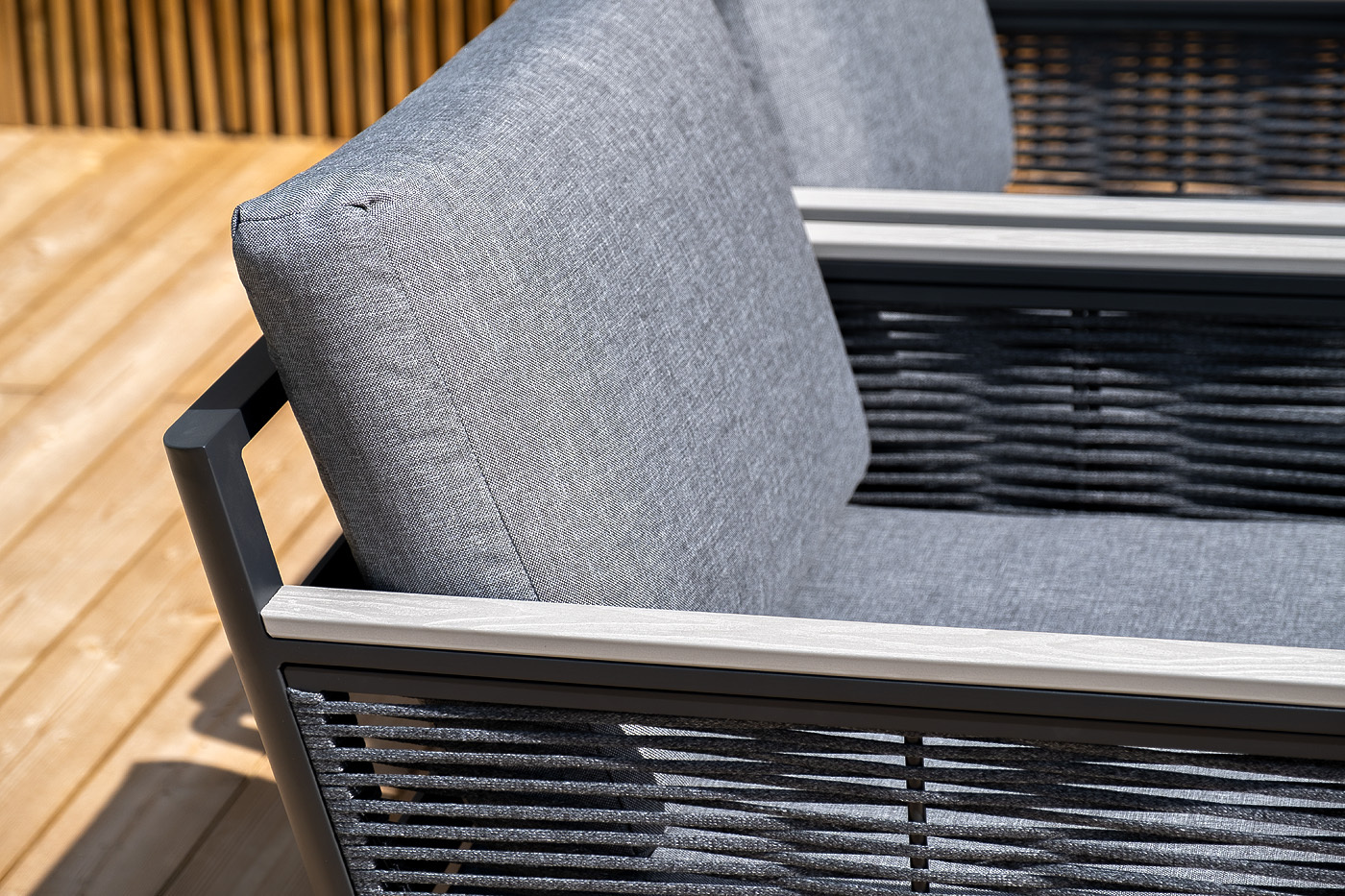 «Сан Ремо» лаунж-зона, алюминиевый каркас серый цвета, вручную оплетенный роупом серого цвета.