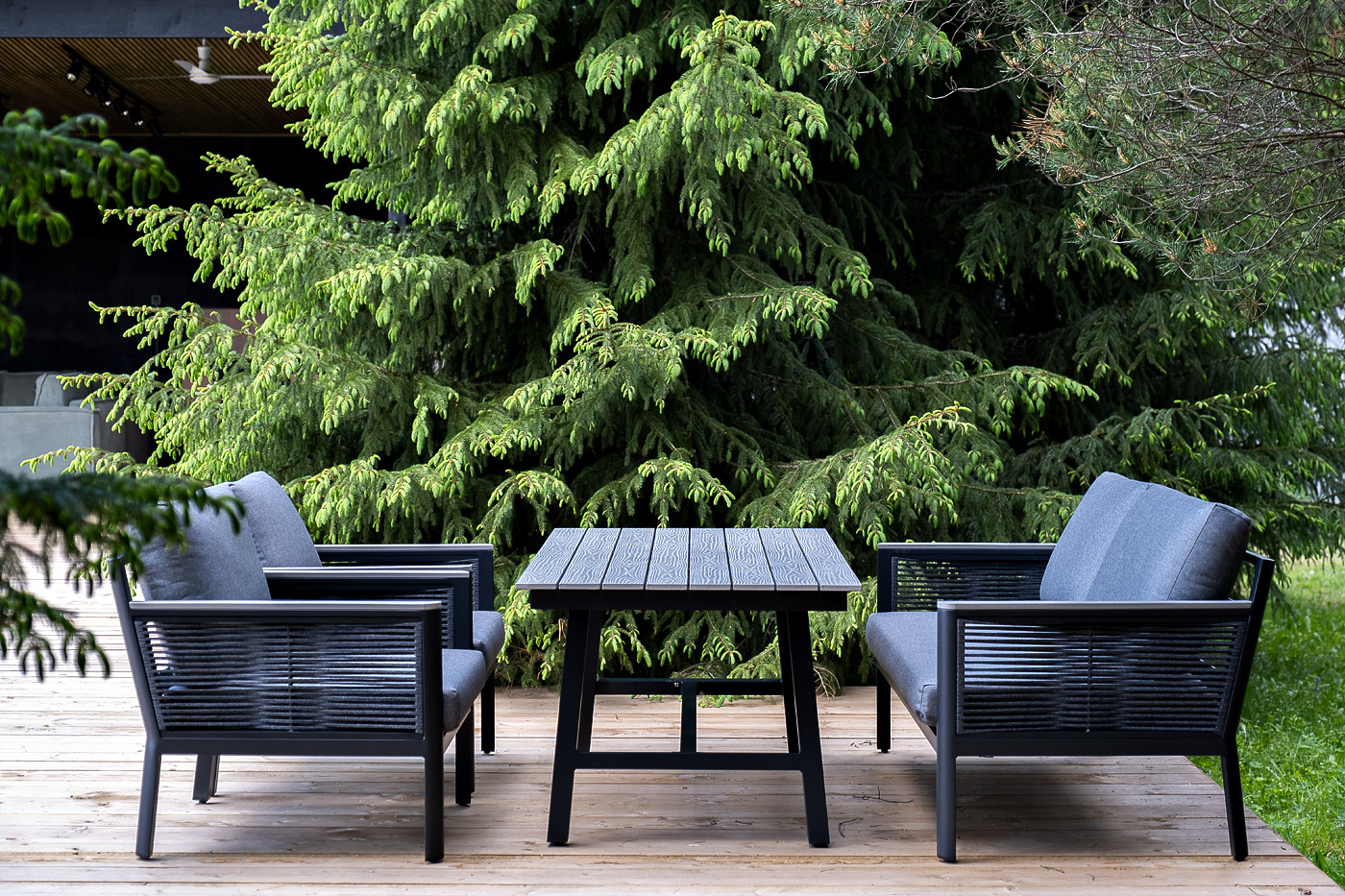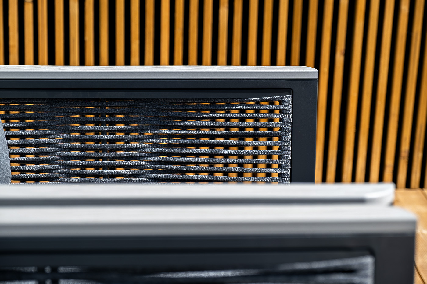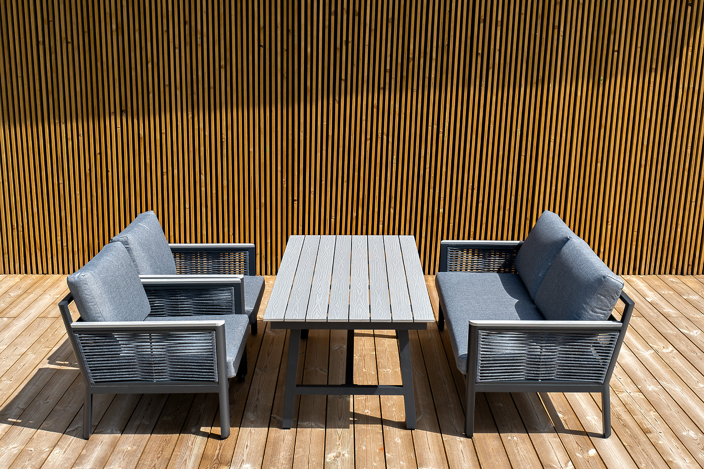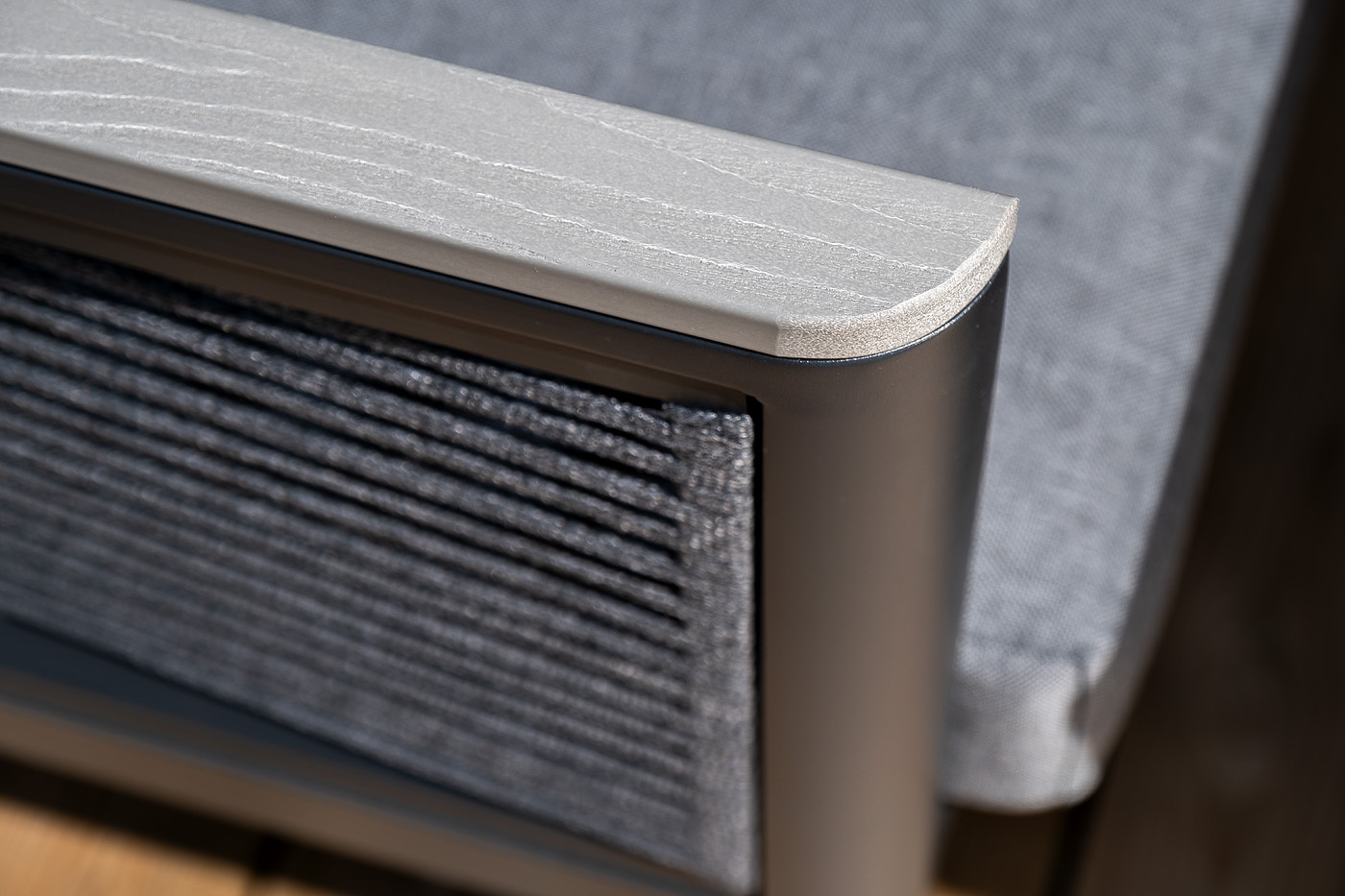 «Сан Ремо» лаунж-зона, алюминиевый каркас серый цвета, вручную оплетенный роупом серого цвета.