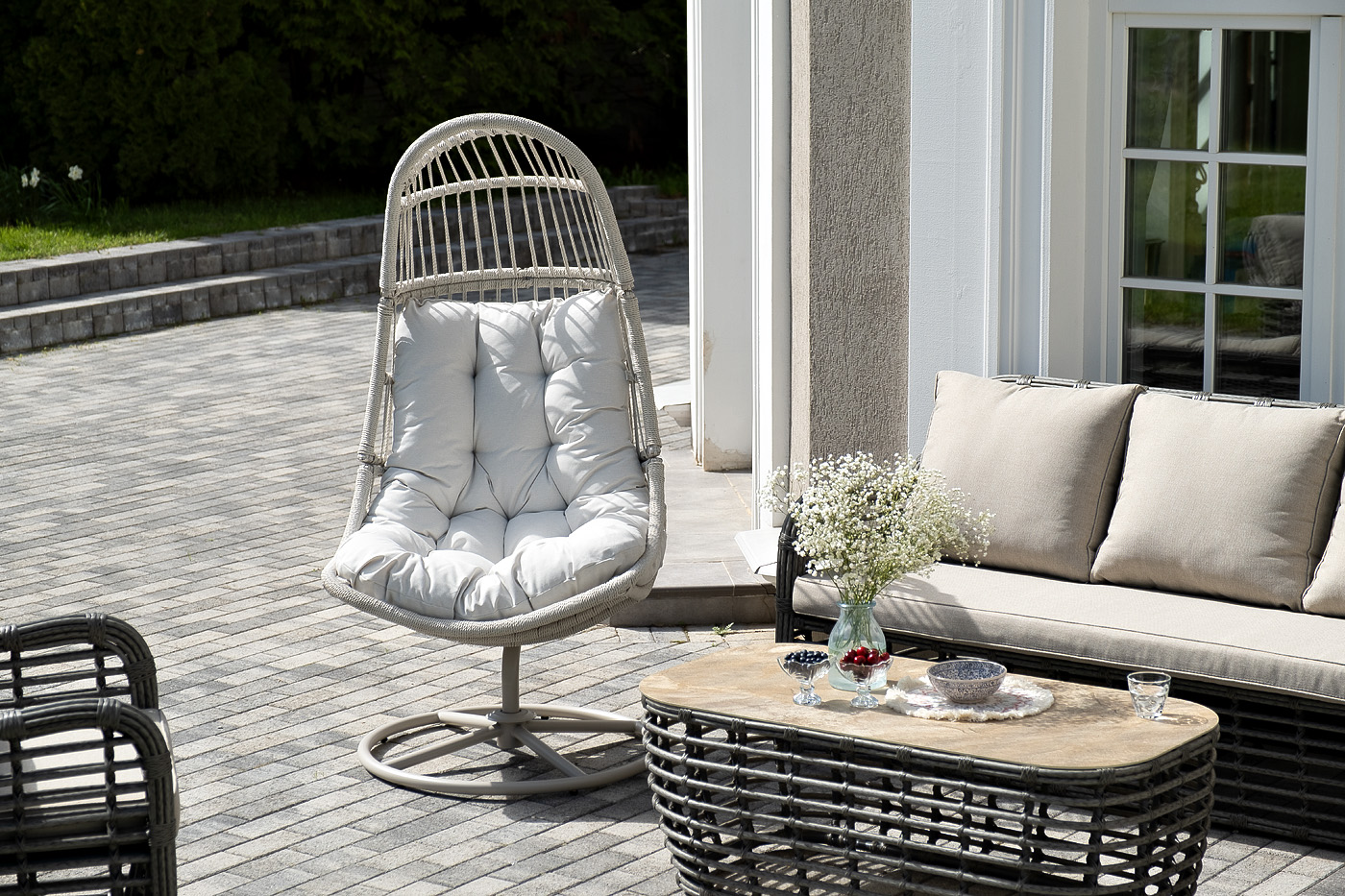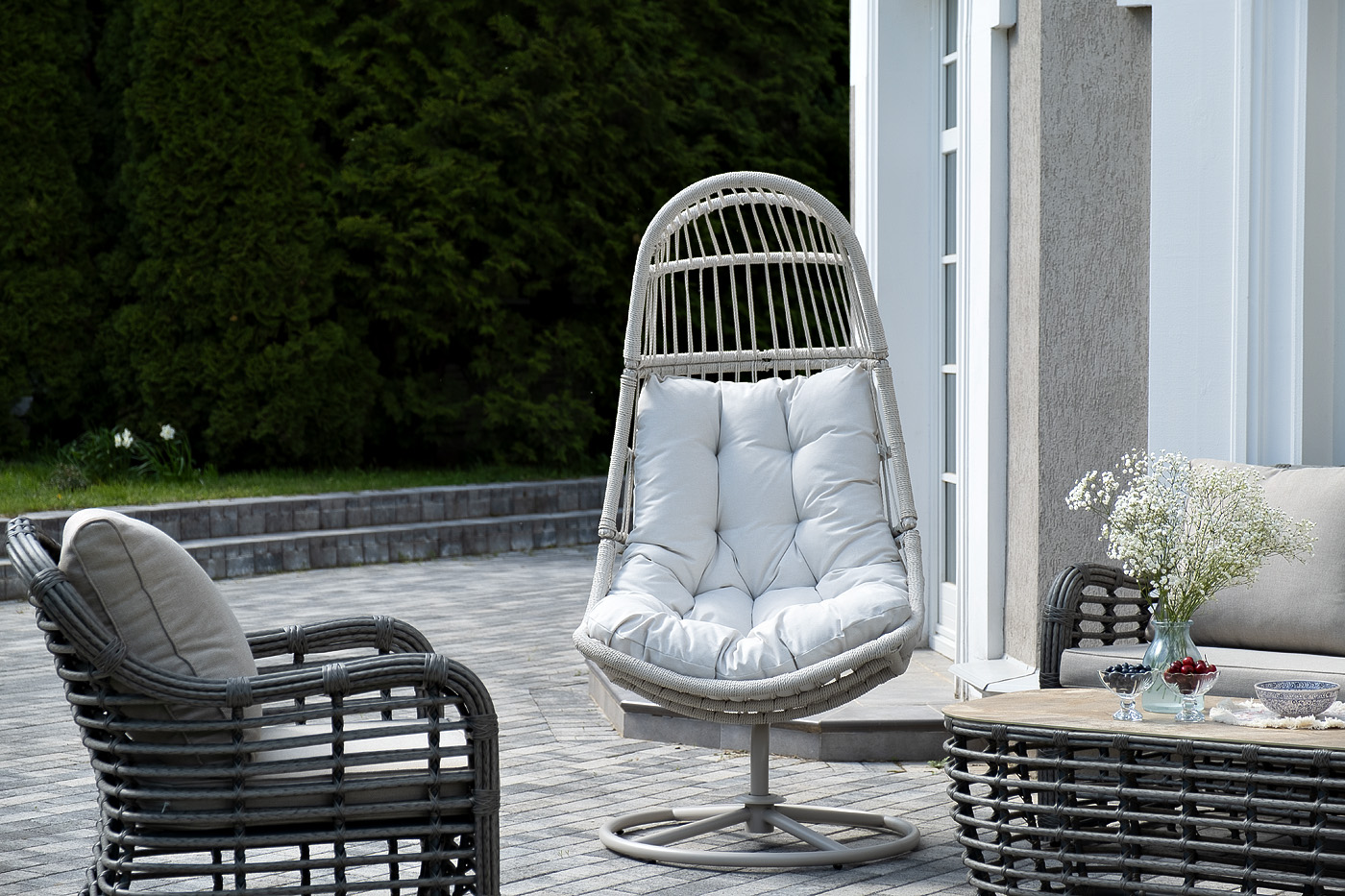 Плетеное кресло-кокон «Севилья» для организации зоны отдыха в саду, на террасе или летней площадке ресторана.