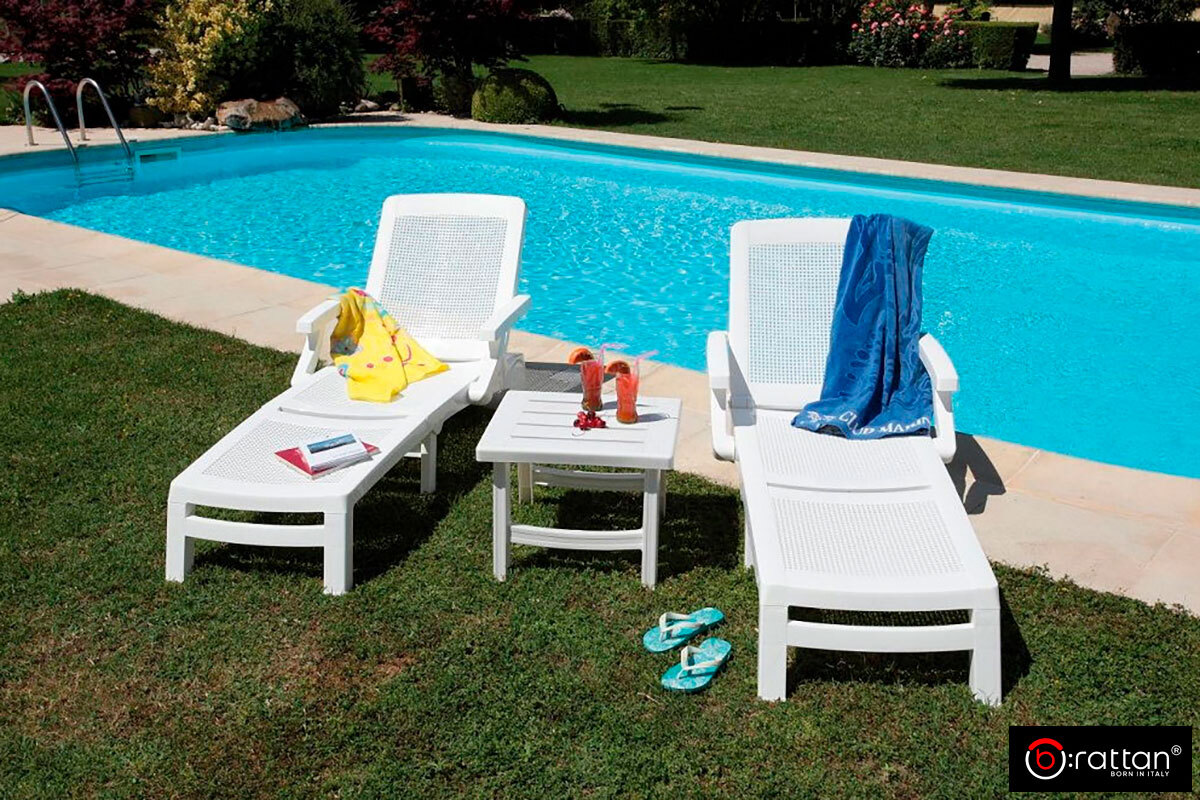 Соберите свой комплект мебели для оформления зоны отдыха у открытой воды, бассейна или на любой уличной площадке.