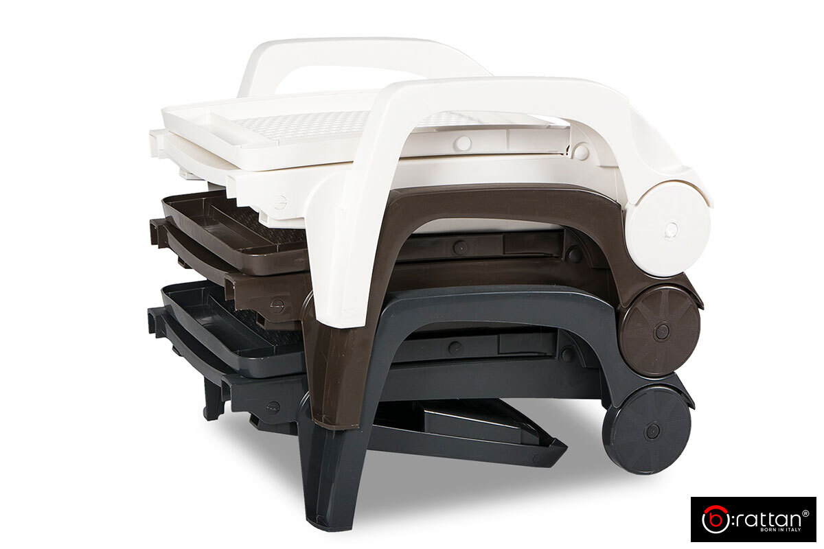 Спинка регулируется в 4 положениях позволяет по-настоящему расслабиться и получать удовольствие от отдыха. Лежаки штабелируются как в сложенном, так и в разложенном виде, что позволяет рационально использовать пространство при хранении.