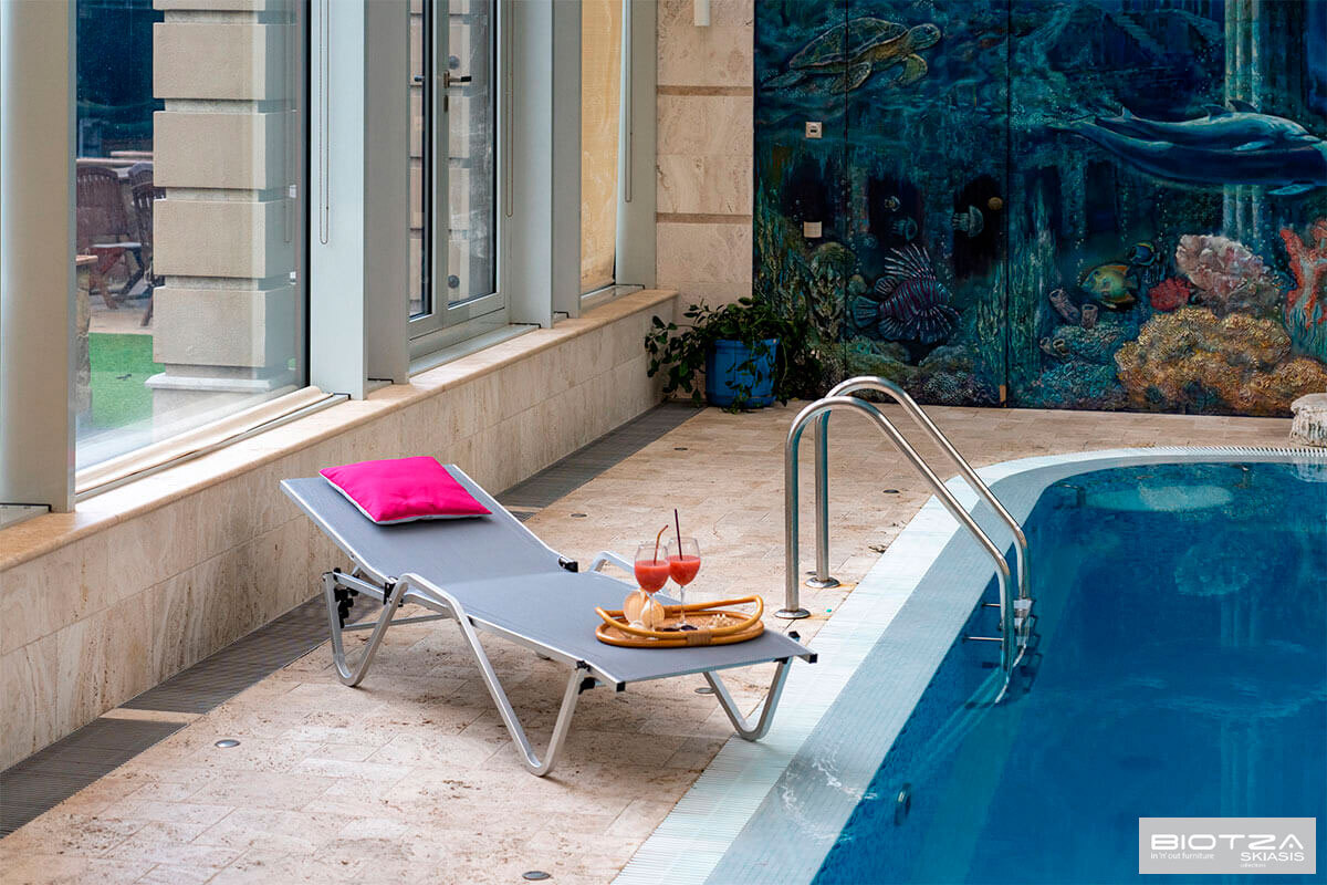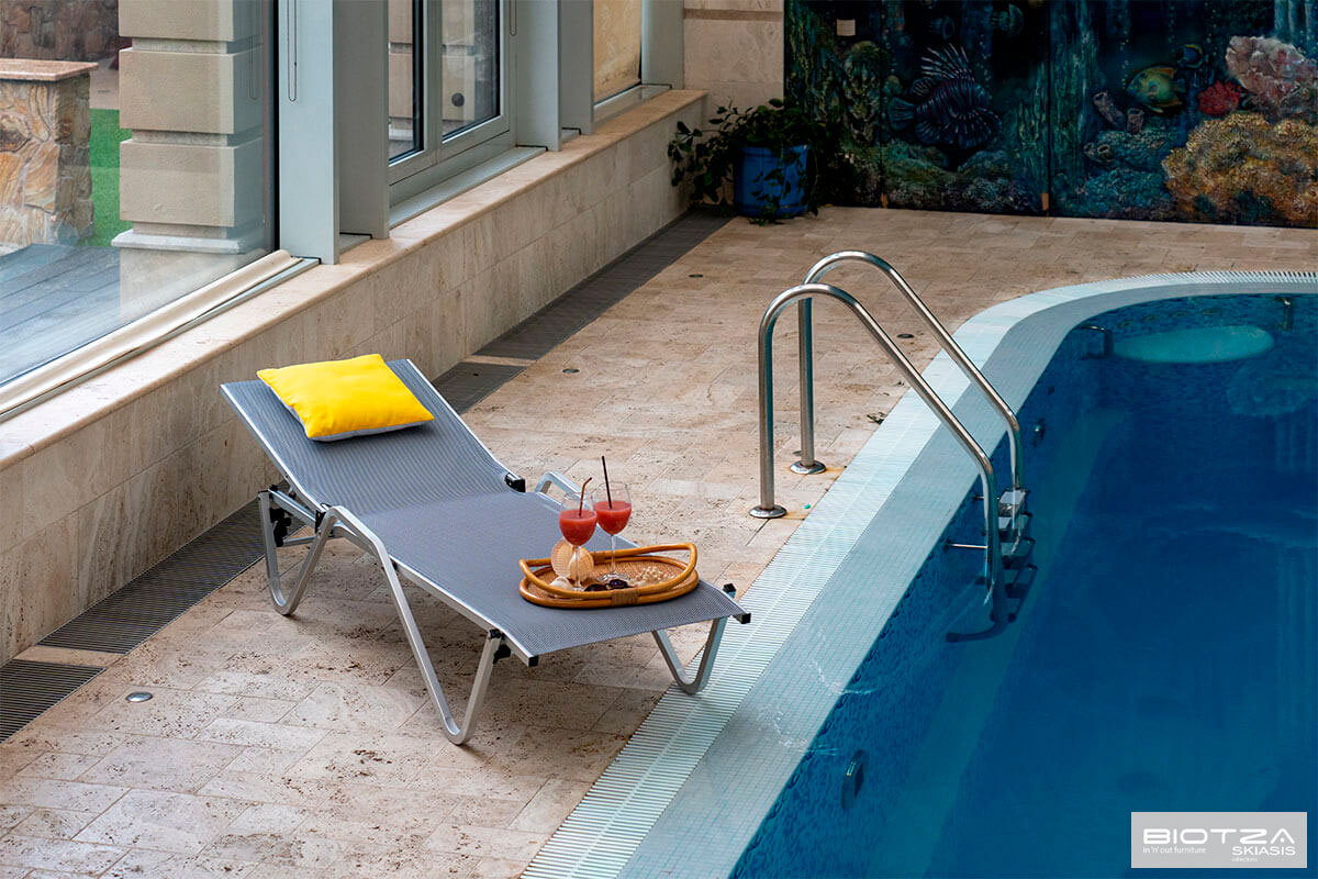 Стильные эргономичные шезлонг из коллекции BIOTZA для зон у бассейна.