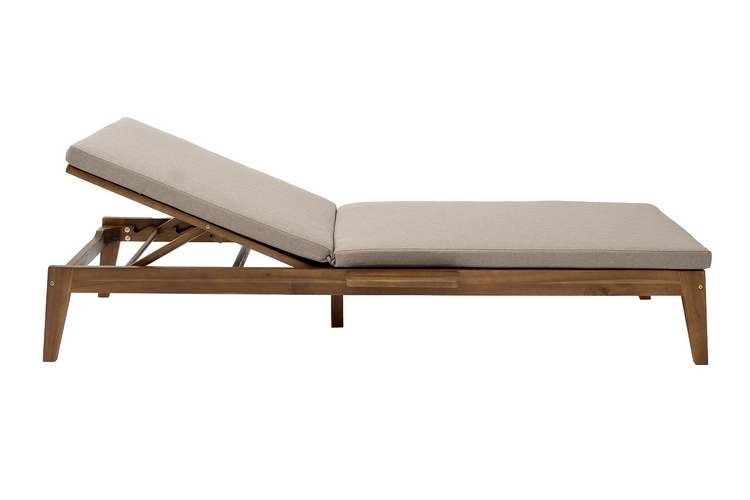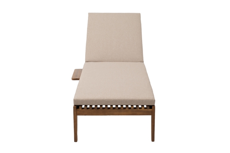 MONA – современная коллекция садовой мебели из акации в скандинавском стиле в комбинации массива акации и бежевых подушек.