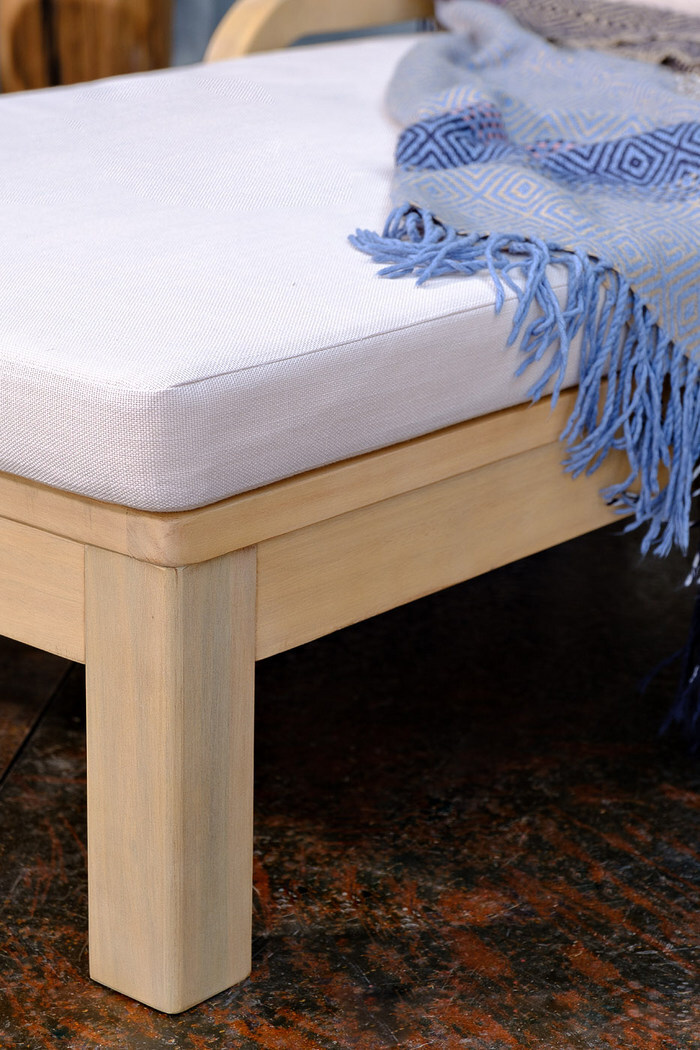 Материал — массив акации, отделка экомаслом светлый тик, веревочное плетение роуп