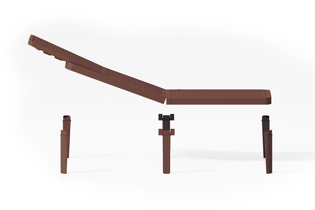 Шезлонг складной TWEET compact – функциональный компактный садовый лежак с поверхностью, напоминающей фактуру плетеного ротанга.