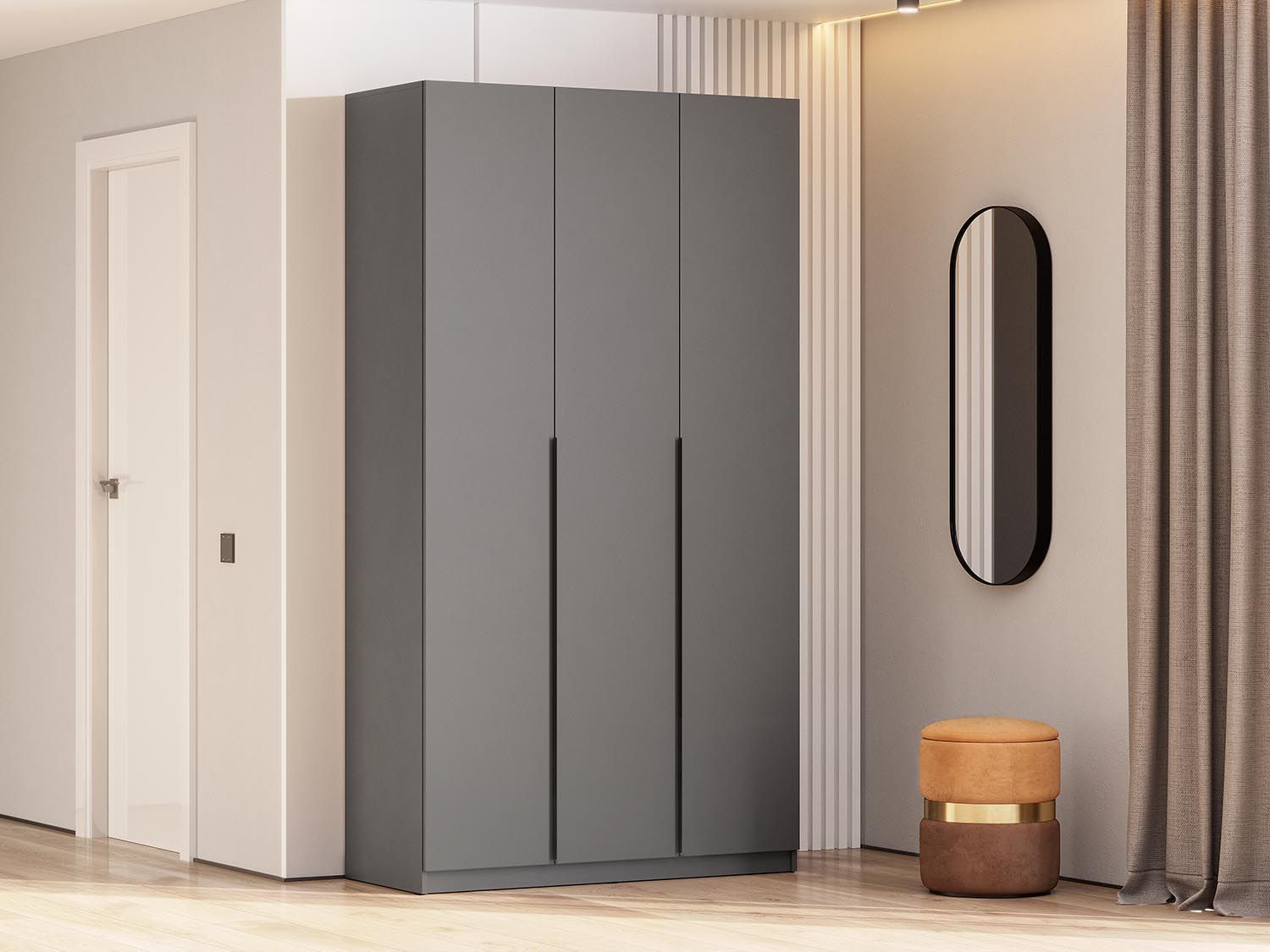 Конструкция с 3-я глухими распашными дверцами.