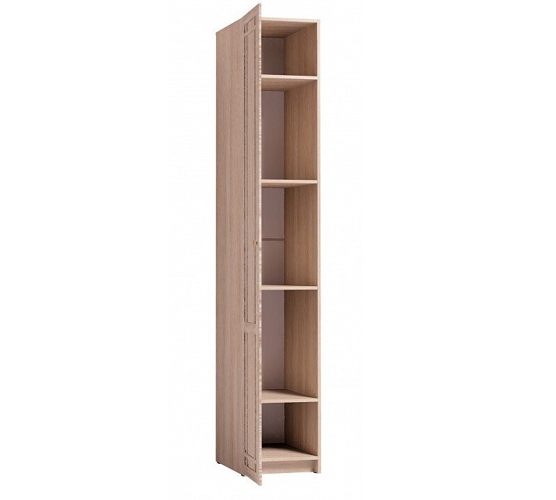 Высокий шкаф-пенал Sherlock 61 - классическая модель для спальни. За рамочным фасадом из профиля МДФ скрывается комплект полок (4 шт), регулируемых по высоте.