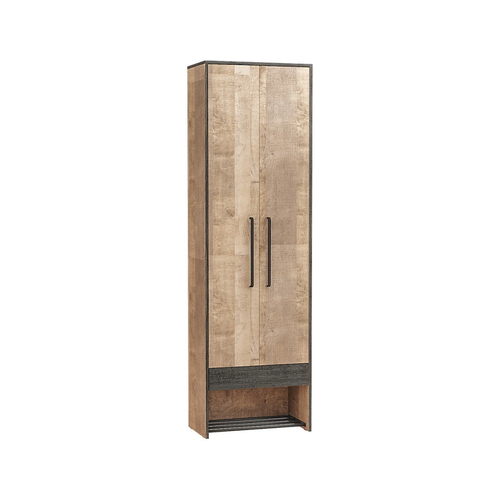 Благодаря скрытым направляющим и четырёхшарнирным петлям с доводчиками обеспечивается максимальный комфорт и надёжность использования. Металлические опоры придают мебели прочность, аутентичность и функциональность. Лицевая фурнитура с таким же покрытием подчёркивает индустриальный стиль.