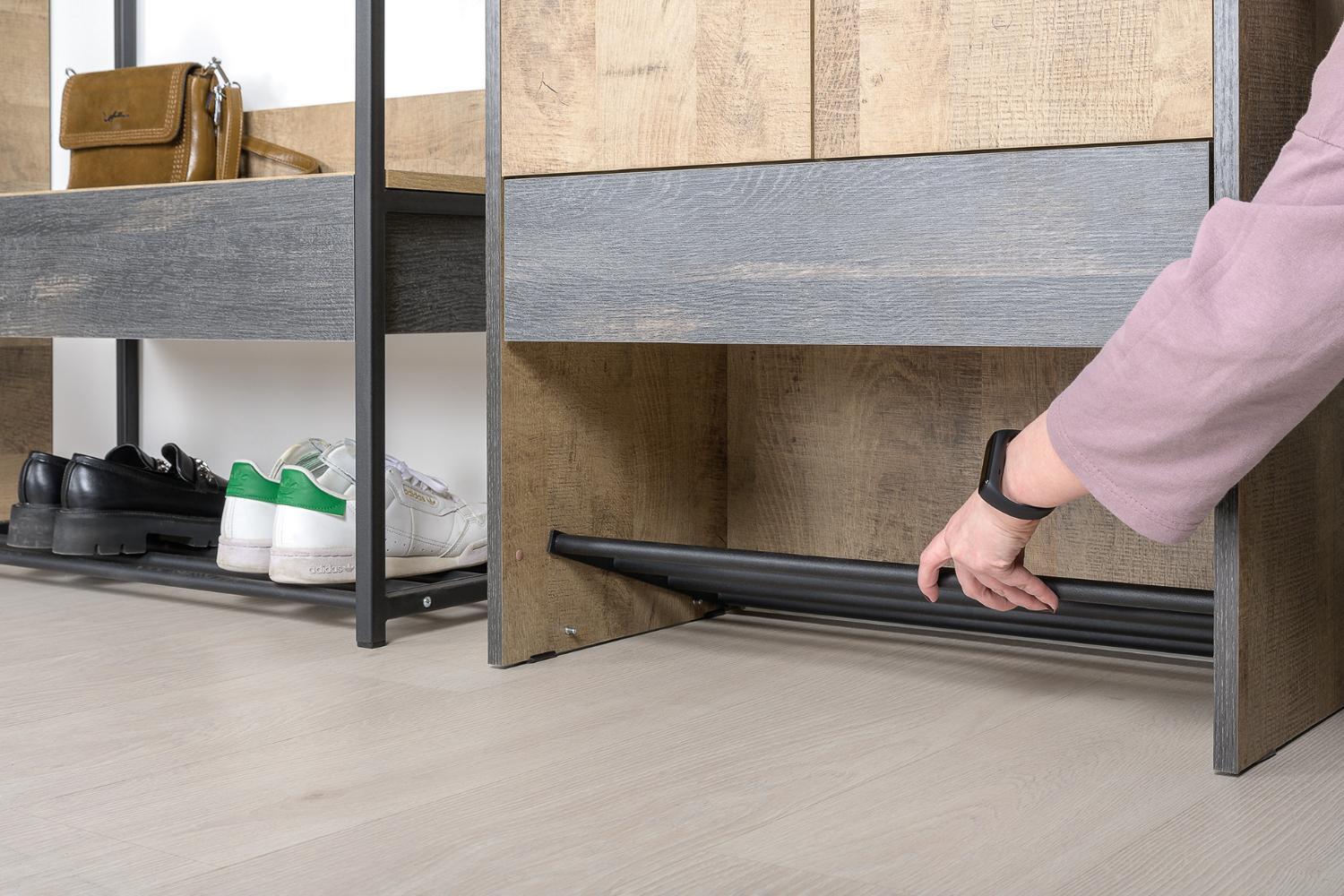 Съёмная металлическая подставка для обуви облегчает процесс уборки и сохраняет чистоту в прихожей.
