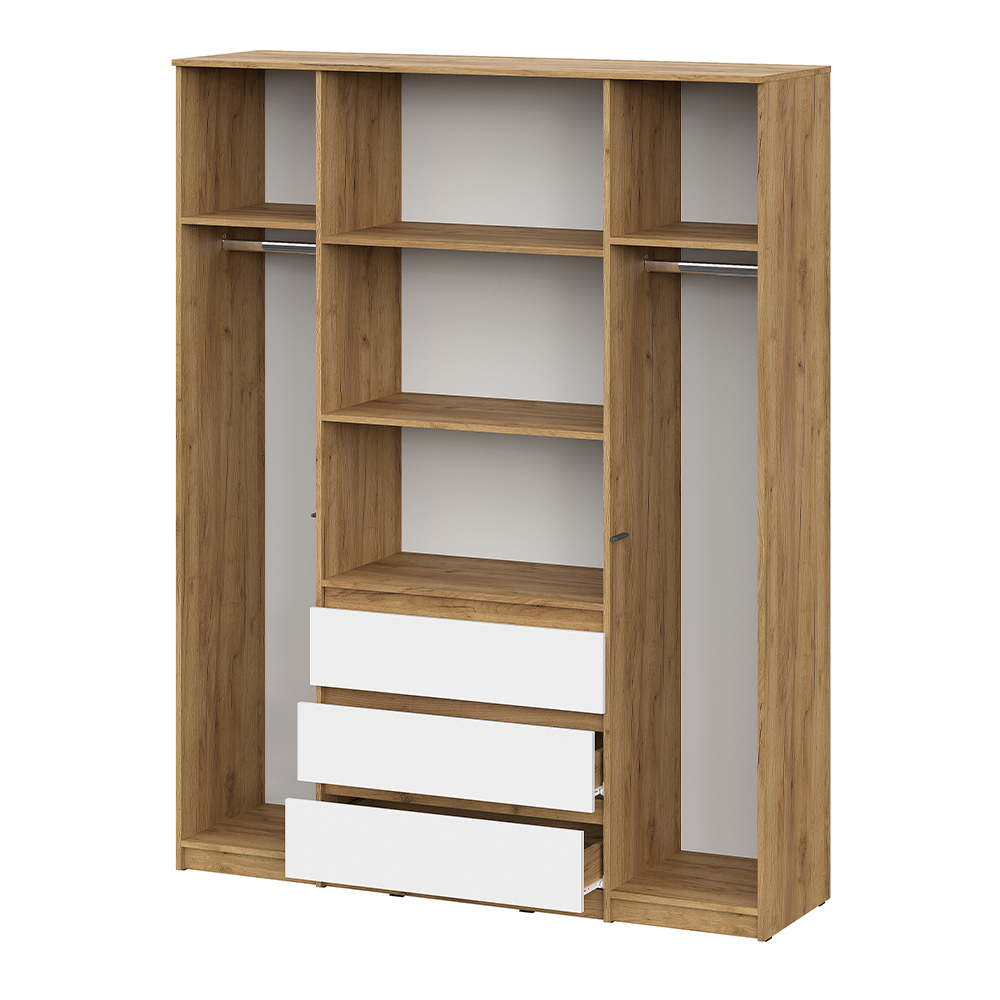 Вместительный распашной шкаф Денвер – это идеальное место хранения. Главное преимущество этого шкафа для одежды - его размер и наличие трех выдвижных ящиков. В нем вы сможете найти место для каждой вещи - от платьев до курток, от белья до обуви. Благодаря широким отделениям, вы сможете легко разделить вашу одежду по категориям и поддерживать порядок внутри. Распашные двери обеспечивают удобный доступ к вашей одежде. Три выдвижных ящика помогут легко и быстро найти нужное. Шкаф Денвер оснащен пятью вместительными полками и двумя штангами для одежды, обеспечивая сохранность и презентабельность Ваших вещей. Двери открываются с помощью нажатия.
