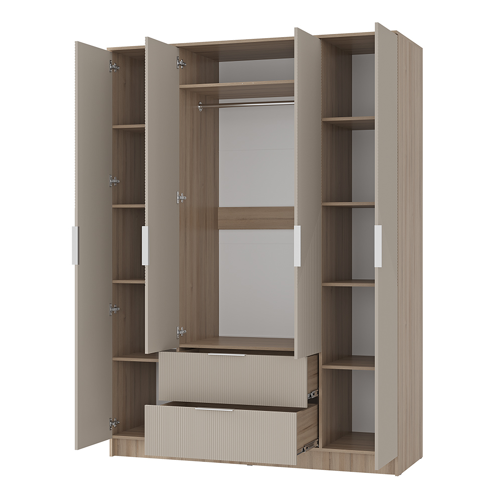Вместительный шкаф для одежды и белья из модульной серии Эмилия – это идеальное место хранения выполненное в спокойной цветовой гамме. Главное преимущество этого шкафа для одежды - его размер и наличие двух выдвижных ящиков. В нем вы сможете найти место для каждой вещи - от платьев до курток. Благодаря многочисленным полкам, вы сможете легко разместить вашу одежду по категориям и поддерживать порядок внутри. Распашные двери обеспечивают удобный доступ.