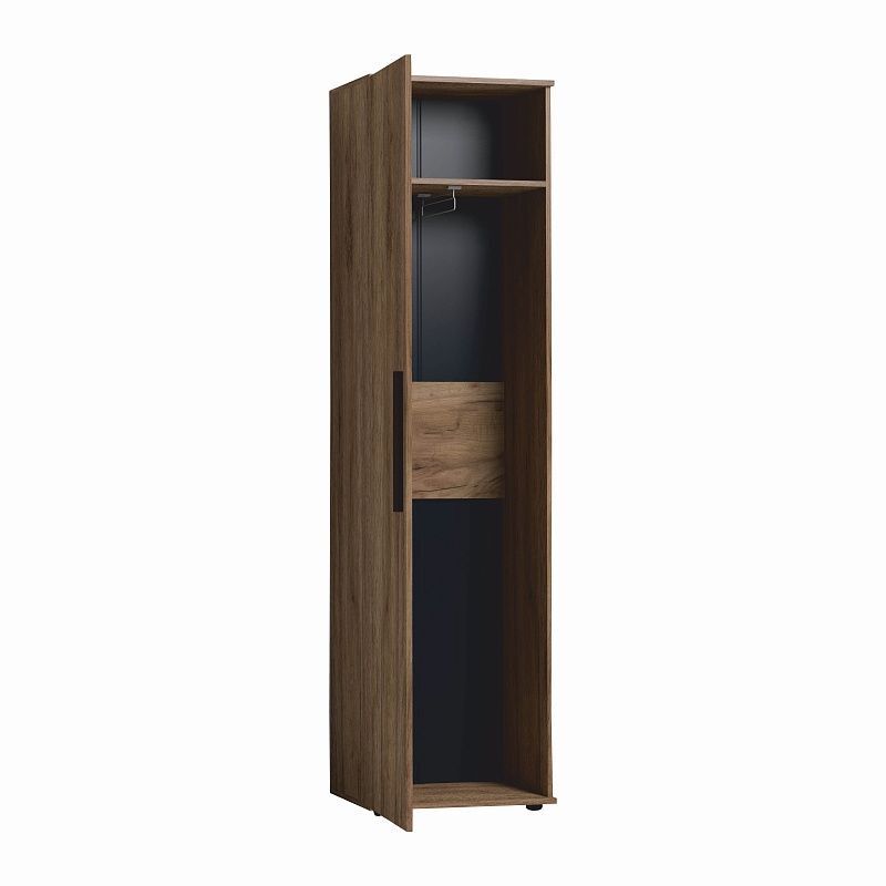 Распашной шкаф в декоре Дуб Табачный комплектуется штангой для одежды и полкой. Выдвижная штанга выдерживает нагрузку до 10 кг. К модулю Nature 71 можно докупить и установитьNature 72 Полки(в комплекте 3 полки) в заранее просверленные варианты присадки. Для удобства использования шкаф может собираться как на левую, так и на правую сторону.