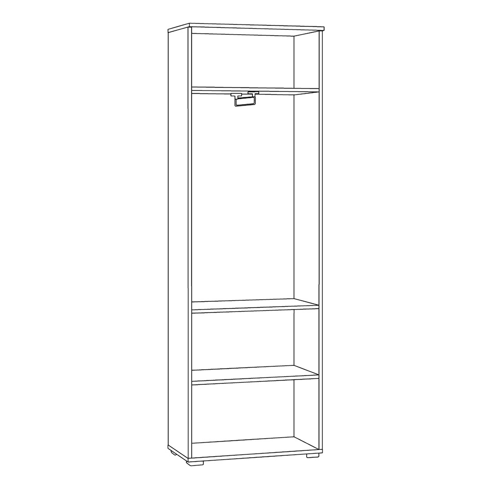 Шкаф оборудован полками и выдвижной вешалкой, что обеспечивает удобное хранение одежды, обуви и аксессуаров.