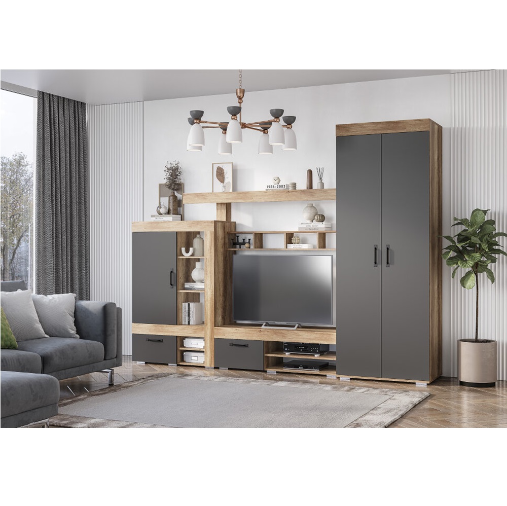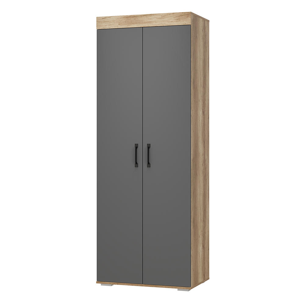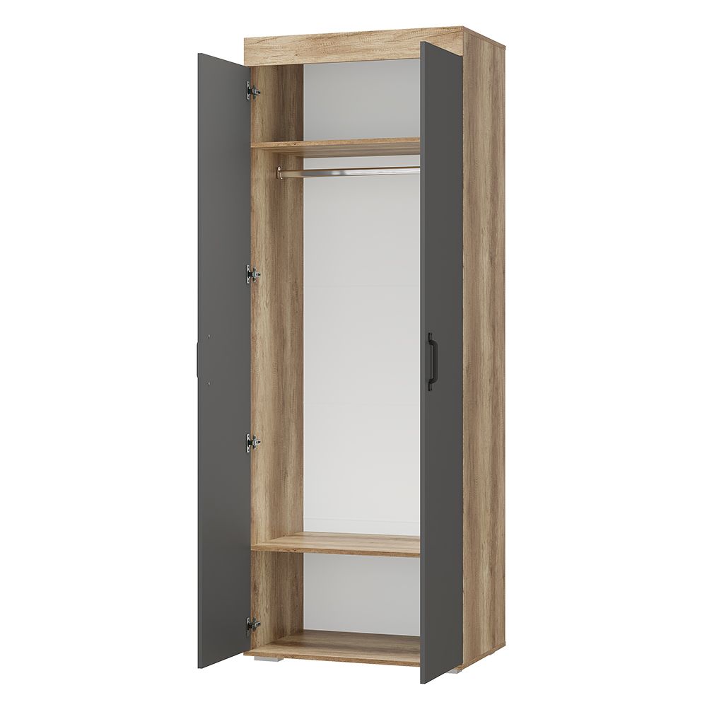 Новая модульная коллекция Прима в актуальном декоре дуб каньон/графит удачно впишется в современную обстановку Вашей квартиры и позволит организовать грамотное хранение вещей в гостиной и спальне. Приятный древесный оттенок корпуса гармонично дополнен матовым графитом, в котором исполнены фасады. Шкаф для одежды и белья Прима оснащен широкой продольной штангой для деликатной одежды на плечиках и двумя полками.