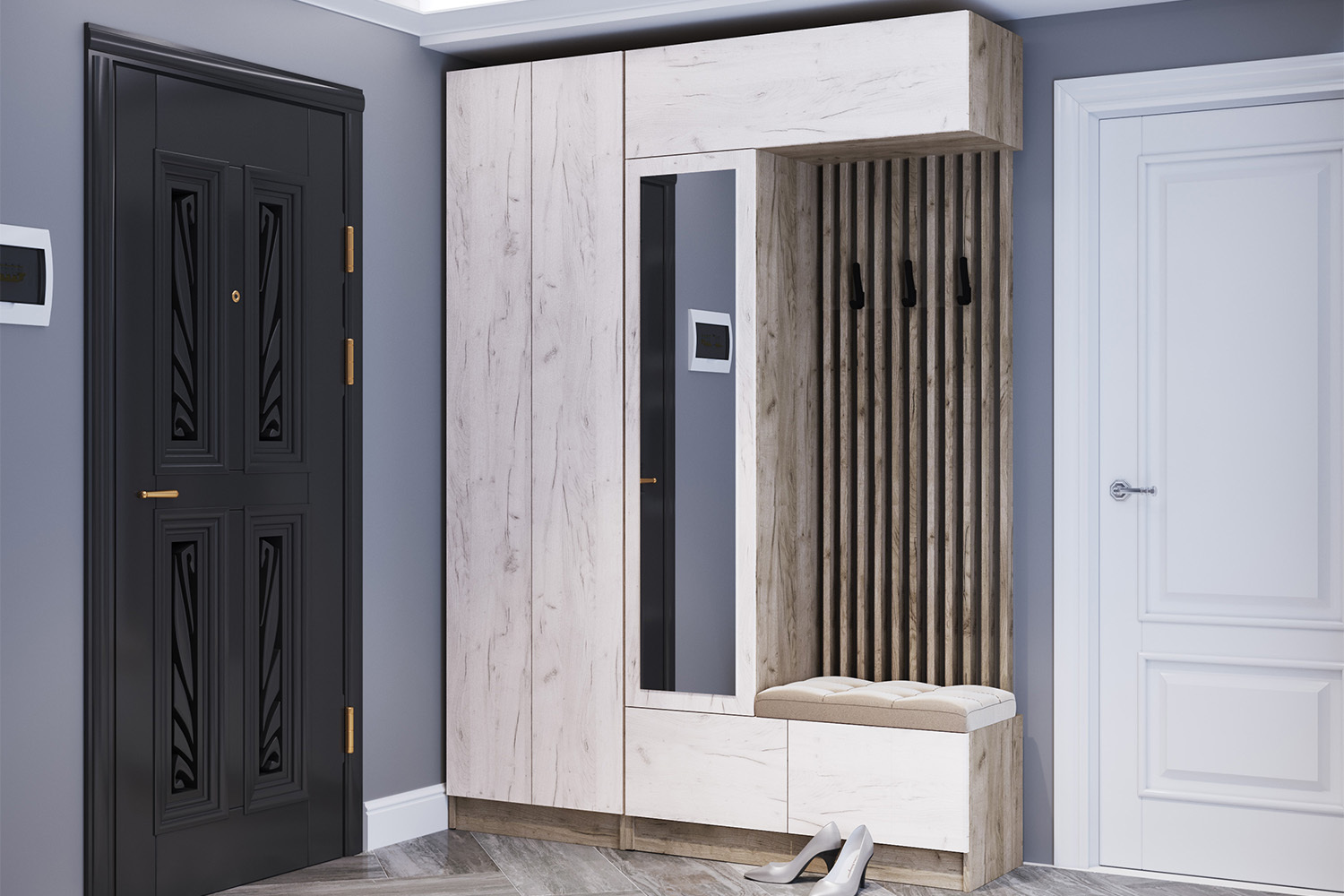 Шкаф для одежды Руэлла с выдвижной штангой - лаконичный предмет мебели, который позволит хранить верхнюю одежду и добавит комфорт в обстановку прихожей.