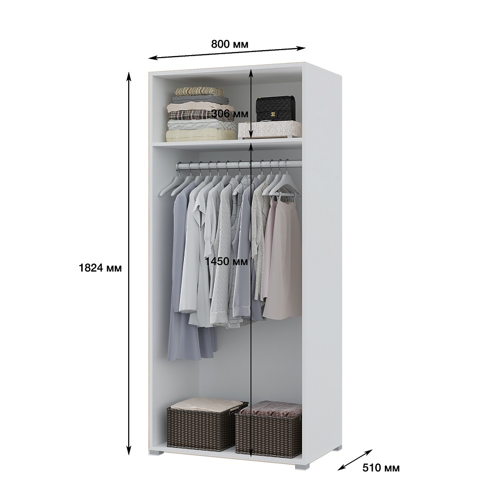 Лаконичный шкаф для одежды Victor впишется в любой дизайн интерьера, от современного до классического. Наличие штанги поможет разместить деликатную одежду на плечиках, а полок - коробки с вещами в сложенном виде. Особенности корпус и фасад ЛДСП пластиковые ручки петли без доводчиков максимальная нагрузка на деревянную полку 8 кг