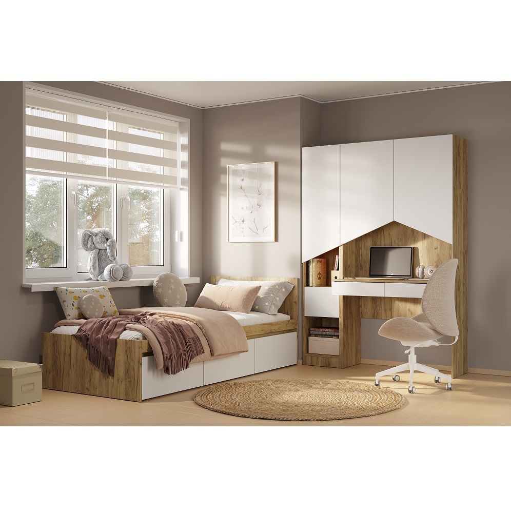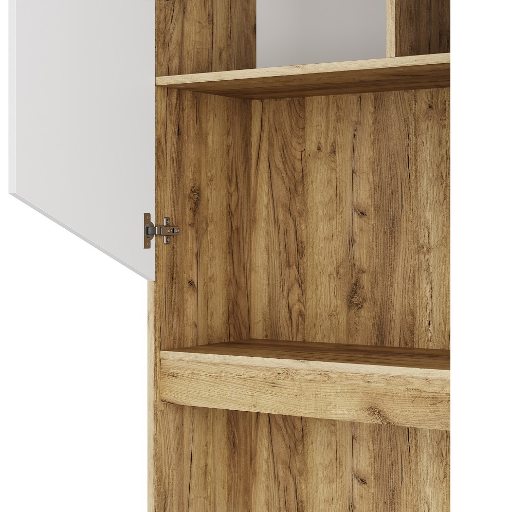 Оригинальный шкаф для детской в сканди-стиле. Приятное сочетание цвета корпуса "дуб ирландский" и белых фасадов визуально облегчит и освежит интерьер комнаты. За распашными фасадами скрываются полки, на которых Ваш ребенок разместит разноплановые вещи, от одежды в сложенном виде до книг и игрушек.