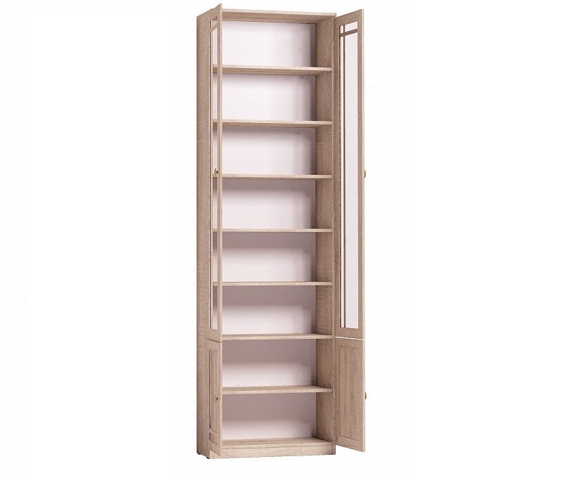 Книжный шкаф Sherlock 32 по достоинству оценят любители печатной литературы и владельцы большого количества книг и журналов. Это высокая распашная модель для комнаты высотой не менее 240 см. Шкаф комплектуется регулируемыми по высоте полками: для этого необходимо установить полкодержатели в подготовленные отверстия.Максимально допустимая нагрузка на каждую полку составляет 13 кг. Благодаря комбинированномустеклом фасаду модуль не выглядит громоздким. Тонированноестекло защитит все Ваши книги и другие вещи, которые Вы решите хранить в шкафу, от вредного воздействия солнечных лучей и загрязнений. Модель прекрасно сочетается со скошенными шкафами Sherlock 34 и 35.
