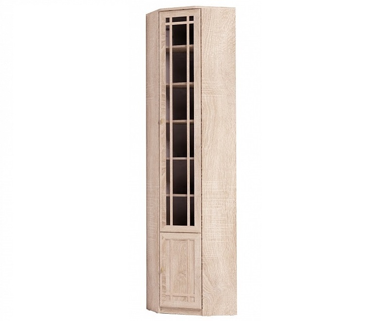 Угловой книжный шкаф - практичное решение для малогабаритных гостиных, библиотек или рабочих кабинетов, где каждый свободный сантиметр важно использовать рационально. Конструкция и габариты шкафа позволят Вам организовать полноценную зону для бережного хранения литературы и сопутствующих вещей. Модуль возможно установить в комнате, высота полотка которой не менее 240 см. Наполнение - комплект регулируемых по высоте полок. Фасад шкафа декорирован тонированным стеклом, свойства которого защитят Ваши книги от вредного воздействия лучей света и загрязнений. Шкаф для книг Sherlock 33 обязательнокрепится к стене за подвесы и межсекционной стяжкой с другими шкафами в комплекте.
