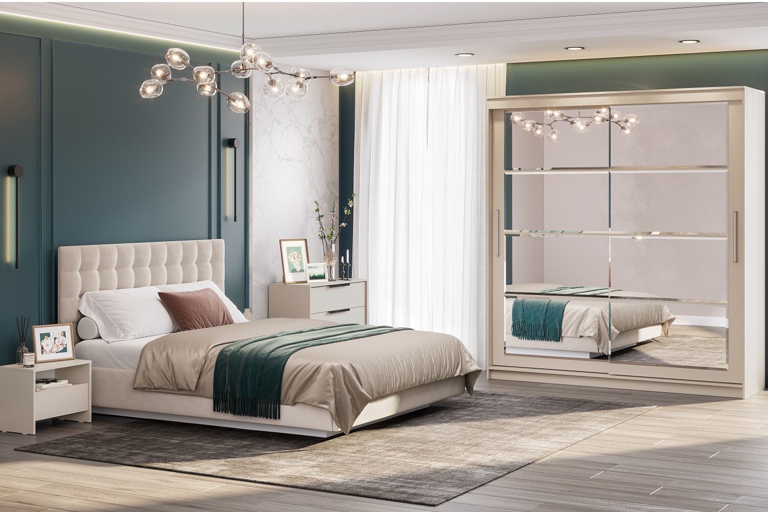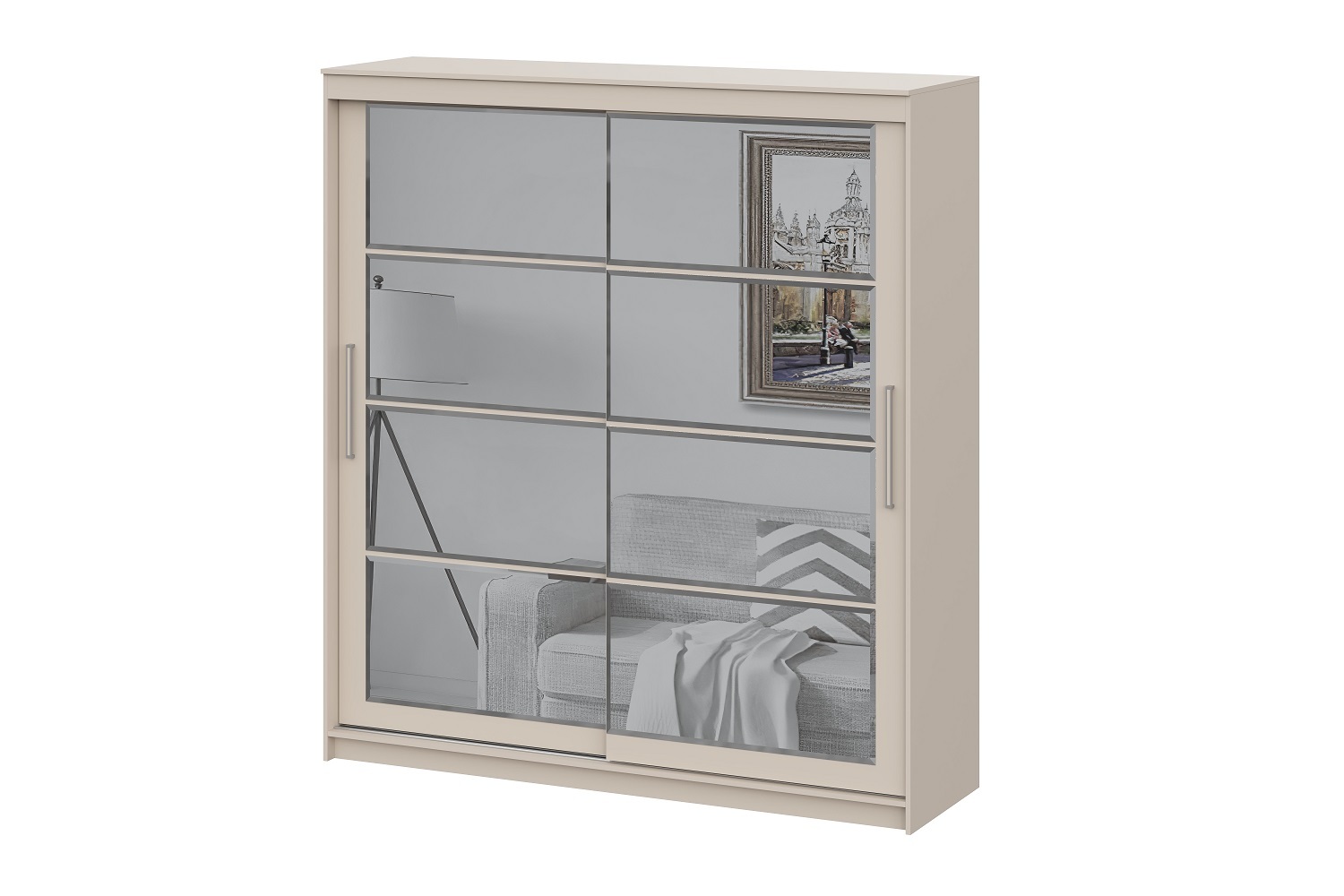 Шкаф-купе №3 — это вместительный и эргономичный шкаф, который станет удобным местом для хранения вещей и стильным элементом интерьера гостиной или спальной комнаты. Его светлые фасады, укрытые стеклом, и огромная зеркальная панель с фацетом визуально расширяют пространство, легко сливаясь в композицию с окружающей мебелью.