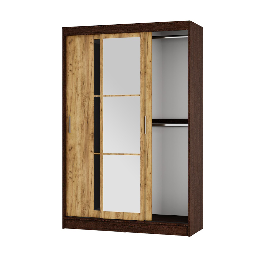 Трёхдверный шкаф-купе ШКК-03 представляет собой сочетание практичности и функциональности. Раздвижные створки снабжены удобными ручками, центральная створка полностью декорирована тремя зеркалами с еврокромкой, которое создаёт иллюзию расширенного пространства, а на боковые створки наклеены по 3 стекла с лакобелью.