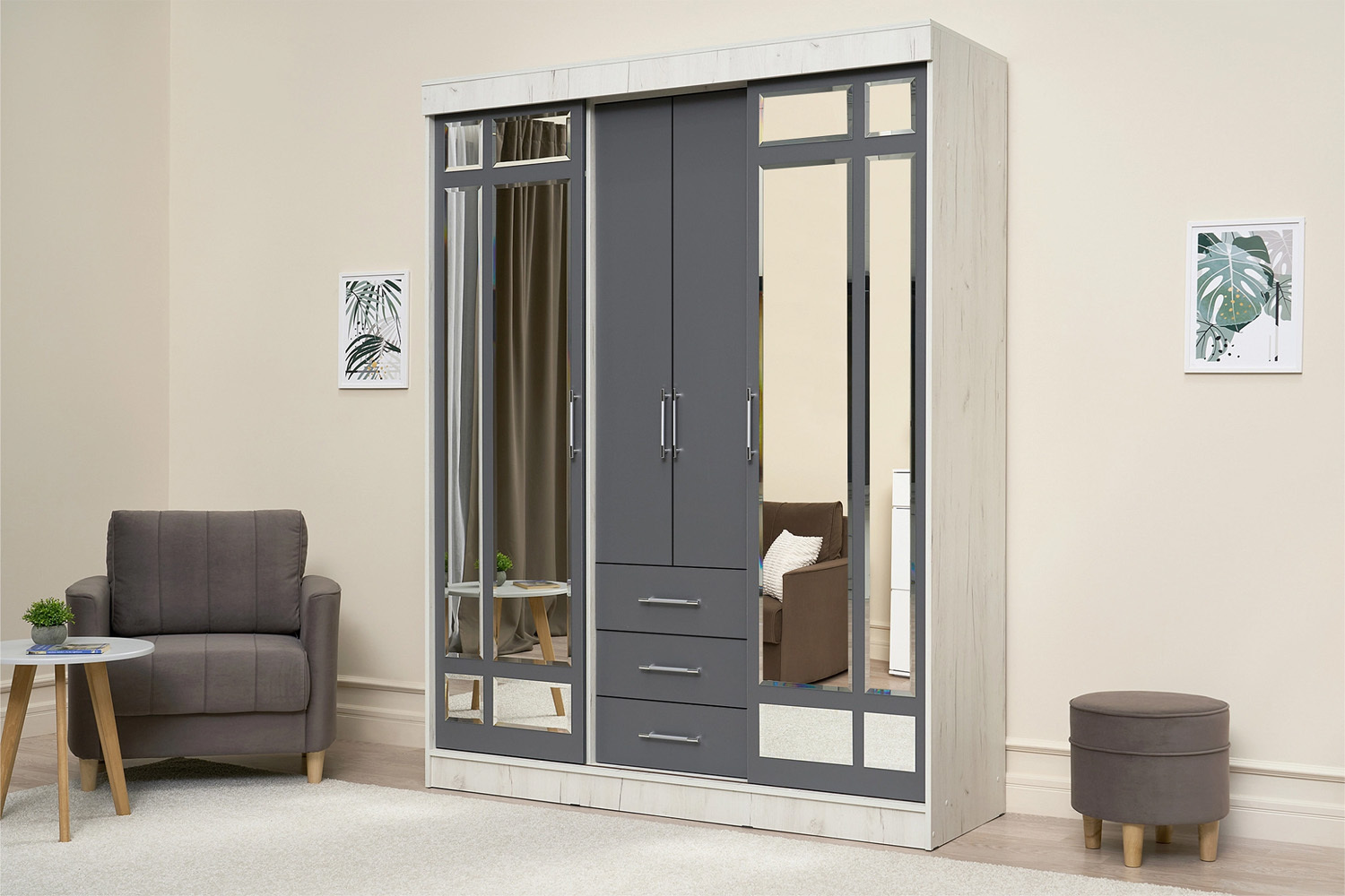 Шкаф-купе Маэстро — это стильное и функциональное решение для вашего интерьера. Его элегантный дизайн и современная отделка создают атмосферу свежести и простора. Этот шкаф оборудован удобными дверцами, зеркалами и выдвижными ящиками.