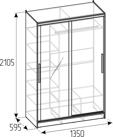 Шкаф-купе STRIKE шириной 1350 мм подойдет для любой комнаты: спальни, гостиной, прихожей, детской. Продуманное внутреннее наполнение шкафа состоит из стеллажа для белья, стационарной штанги длиной 843 мм. Зеркальный фасад с обратной стороны проклеен специальной защитной пленкой, которая предотвратит падение осколков в том случае, если зеркало разобьется. В изготовлении шкафов-купе STRIKE использована прочная стальная система треков «Найди» цвета Металлик. Двери шкафов дополнены ручками из массива и шлегелем, который смягчает удары дверей при закрывании, а также защищают вещи от попадания пыли. Благодаря скрытым полкодержателем полки жестко крепятся на необходимой высоте.