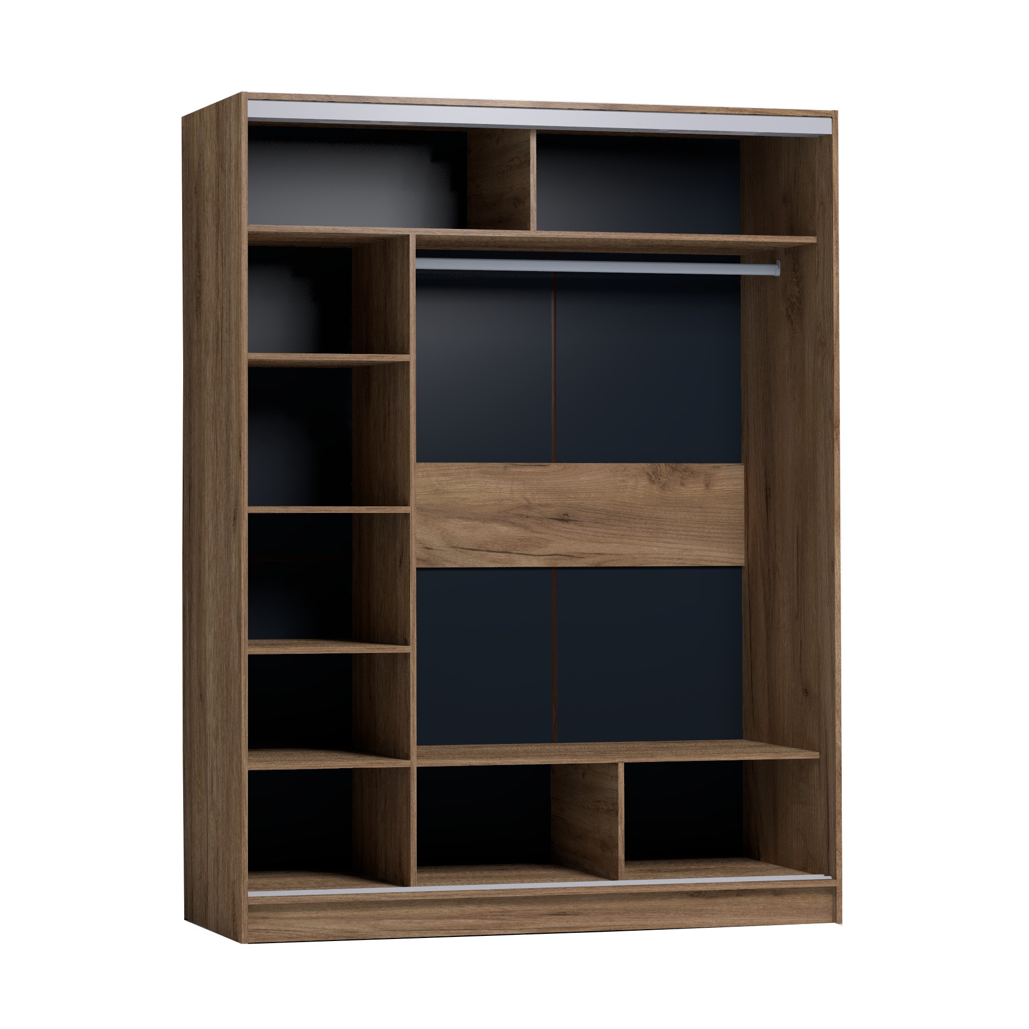 В шкафу-купе шириной 160 см найдется место для гардероба всей семьи. Разместите в нем бельё, верхнюю одежду и аксессуары. Продуманное внутреннее наполнение шкафа состоит из стеллажа для белья, четырех больших ниш внизу и вверху, а также стационарной штанги длиной больше метра. Зеркальная дверца с обратной стороны проклеена специальной защитной пленкой, которая предотвратит от падения осколков, если она разобьется. В изготовлении шкафов-купе STRIKE использована прочная стальная система треков «Найди» цвета Металлик. Двери шкафов дополнены ручками из массива и шлегелем, который смягчает удары дверей при закрывании, а также защищают вещи от попадания пыли. Благодаря скрытым полкодержателям полки жестко крепятся на необходимой высоте.
