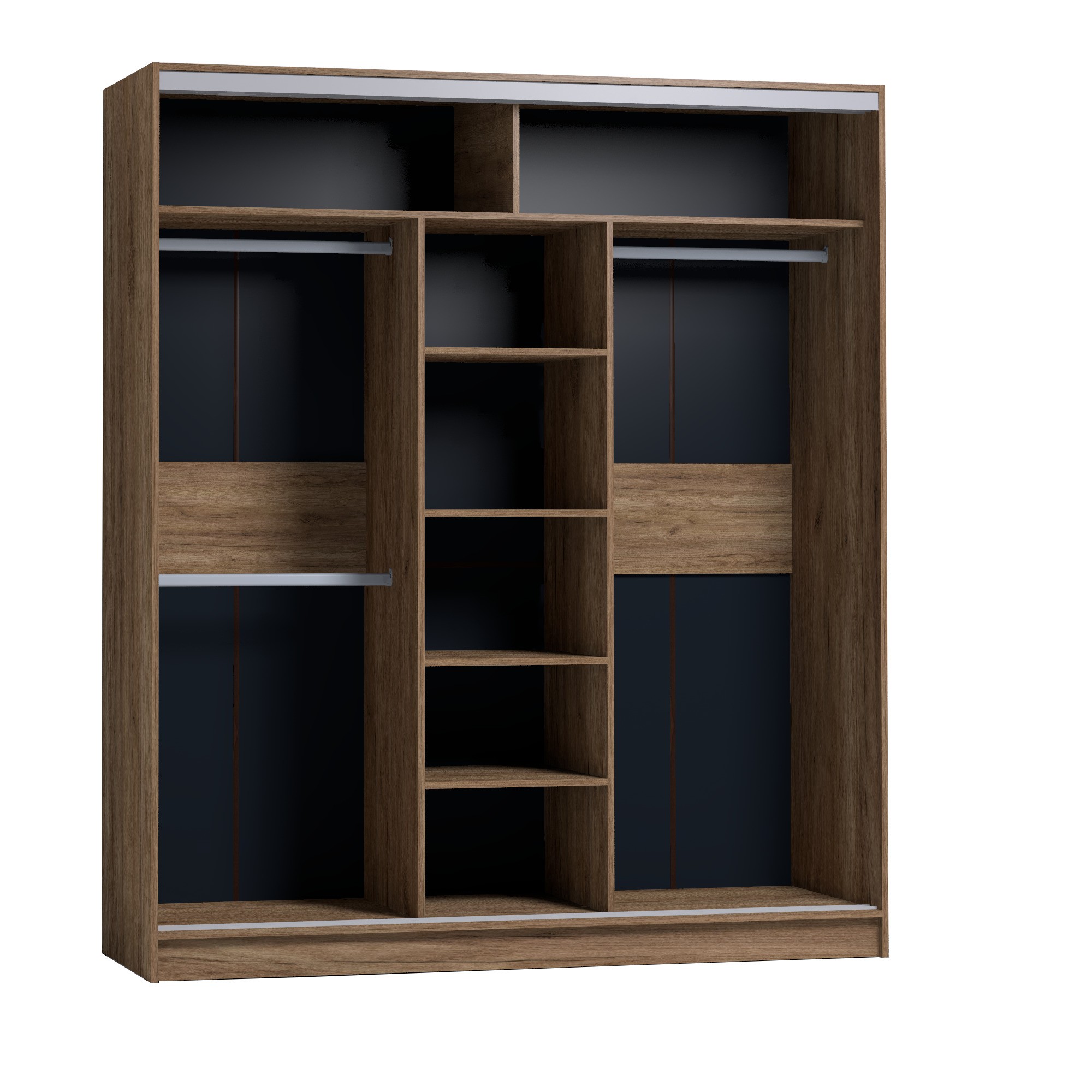 Шкаф-купе STRIKE шириной 1800 мм подойдет для любой комнаты: спальни, гостиной, прихожей, детской. Продуманное внутреннее наполнение шкафа состоит из полок для белья и трех стационарных штанг длиной 635 мм. Разная высота крепления штанг позволяет держать в порядке короткие пиджаки, брюки и длинные вещи отдельно друг от друга. В изготовлении шкафов-купе STRIKE использована прочная стальная система треков «Найди» цвета Металлик. Двери шкафов-купе STRIKE дополнены ручками из массива и шлегелем, который смягчает удары дверей при закрывании, а также защищают вещи от попадания пыли. Зеркальный фасад с обратной стороны проклеен специальной защитной пленкой. Осколки не разлетятся, если зеркало вдруг разобьется. Благодаря скрытым полкодержателям полки шкафов-купе STRIKE жестко крепятся на необходимой высоте. Дополнительные модули:Шкаф-купе 1800 карнизиБрючница 3.