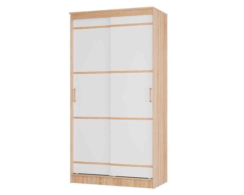 Шкаф-купе Сакура в новом, трендовом декоре "дуб сонома/белый" с рисунком, имитирующим текстуру натурального дерева, будет гармонично смотреться в современном интерьере и благодаря компактному размеру отлично впишется в обстановку спальни или прихожей. Система открывания дверей "купе" экономит пространство перед шкафом, а приятный белый декор с геометрическим рисунком визуально расширяет пространство. Наполнение шкафа - продольная штанга и комплект полок.