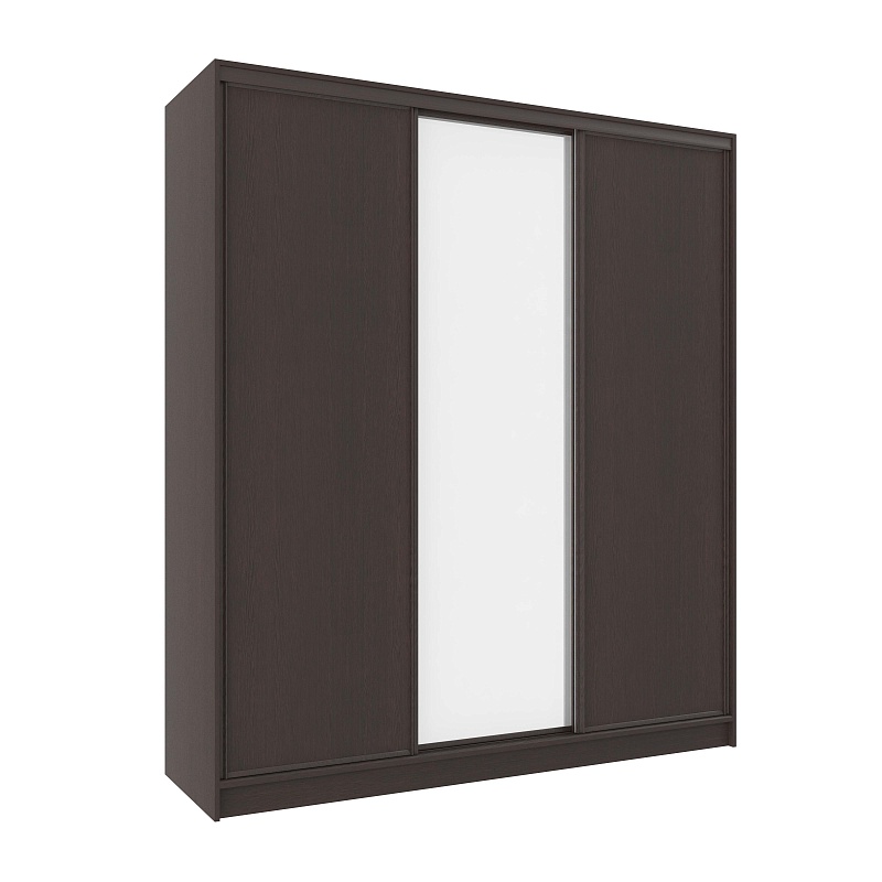 В шкафу-купе шириной 2 м найдется место для гардероба всей семьи. Разместите в нем бельё, верхнюю одежду, головные уборы и саквояж. Продуманное внутреннее наполнение, состоящее из трёх стационарных штанг и полок для белья, позволяет зонировать хранение одежды каждого члена семьи. Благодаря разделению фасада на три двери, доставать вещи очень легко. Зеркало центральной двери с обратной стороны проклеено специальной защитной пленкой, которая предотвратит от падения осколков, если оно разобьется. Если нужно взять вещи из шкафа в темное время суток и при этом не разбудить супруга,установитеКарниз 101 Домашнийс подсветкой.