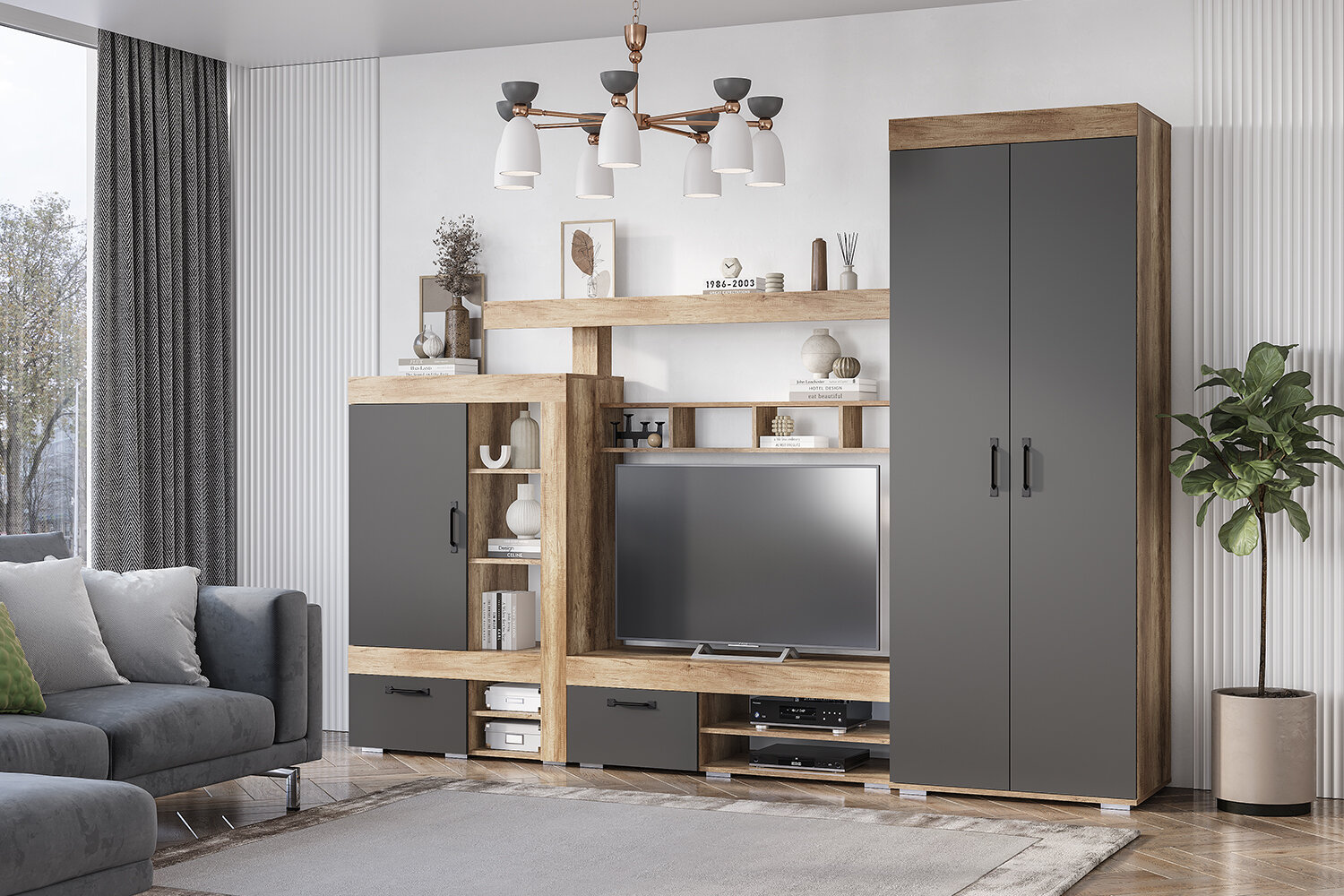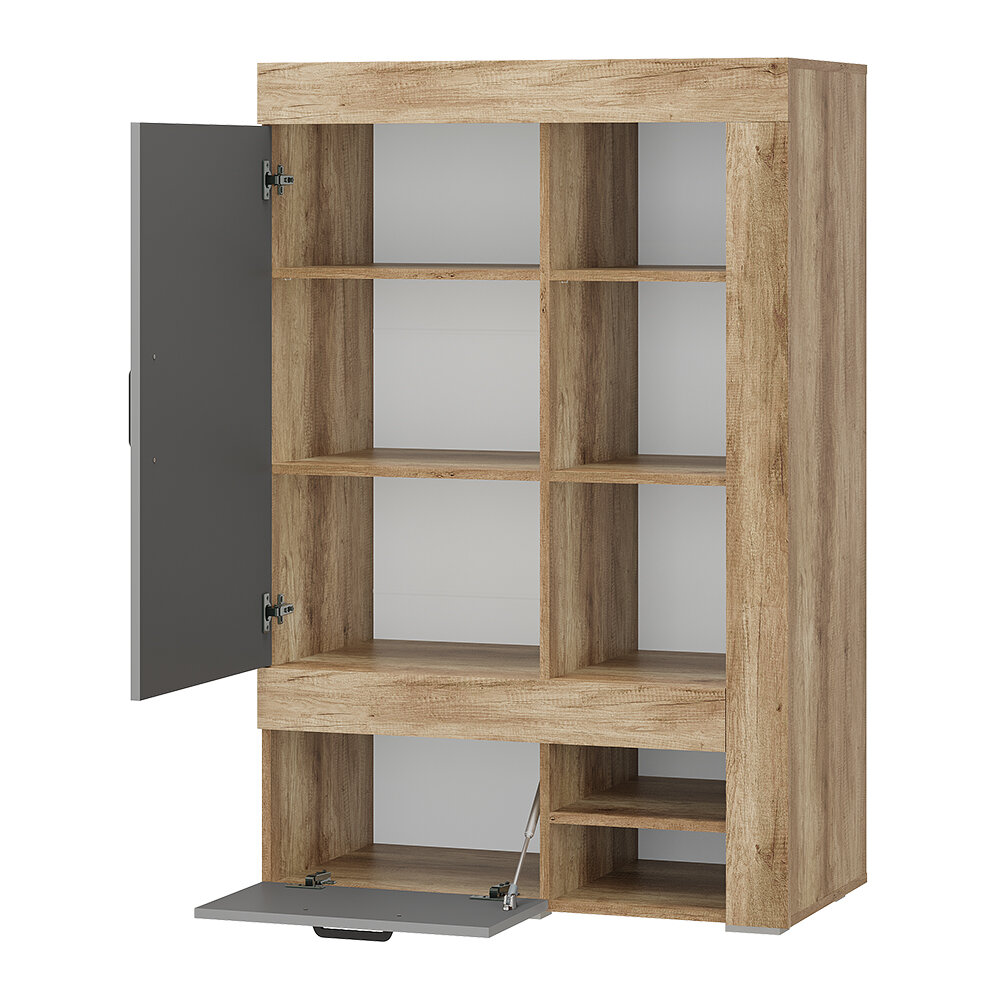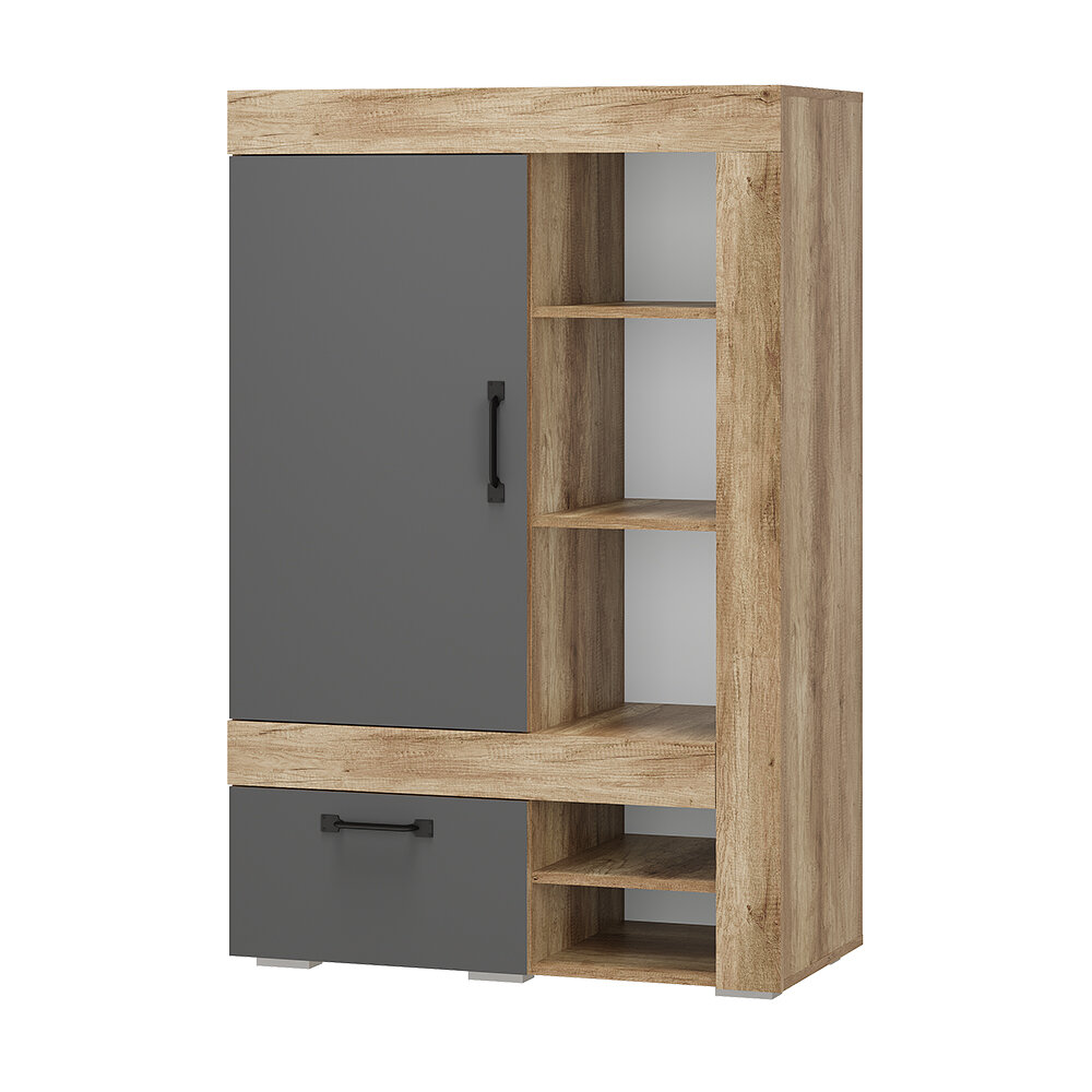 Новая модульная коллекция Прима в актуальном декоре дуб каньон/графит удачно впишется в современную обстановку Вашей квартиры и позволит организовать грамотное хранение вещей в гостиной и спальне. Приятный древесный оттенок корпуса гармонично дополнен матовым графитом, в котором исполнены фасады. Многофункциональный шкаф ШК-17 отличается интересным дизайном и разноплановым наполнением. Сборка на обе стороны.