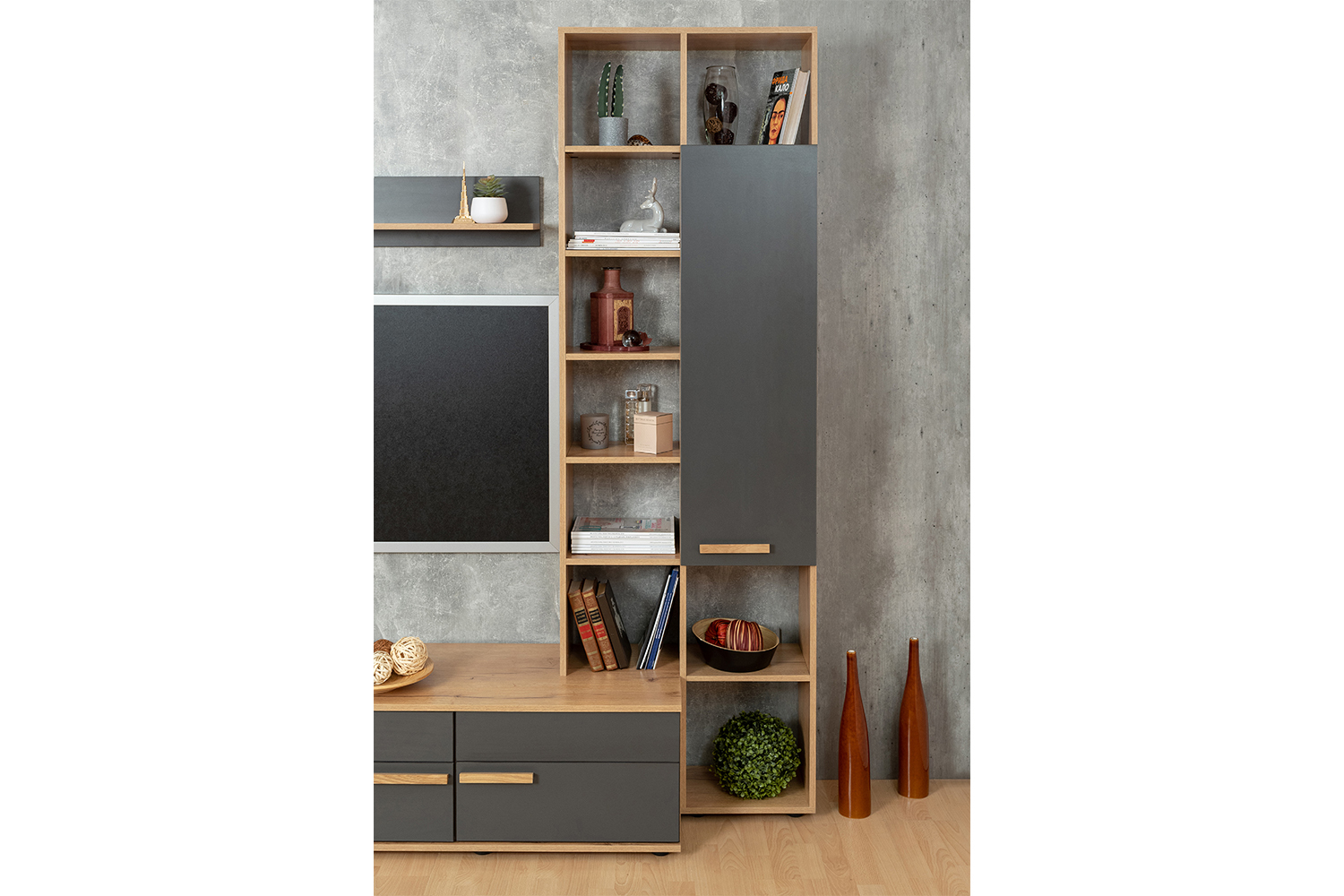 Шкаф 11 Crown - универсальный предмет мебели в гостиной. В комплект входит набор полок, на которых Вы с комфортом разместите все вещи, которые лучше спрятать от лишних глаз: книги, коробки с мелочовкой, ценности. Нижний фасад откидной и имеет кронштейн-ограничитель. Благодаря регулируемым опорам Вы можете компенсировать незначительные неровности пола. Модуль собирается на левую или правую сторону.