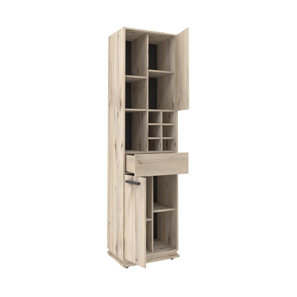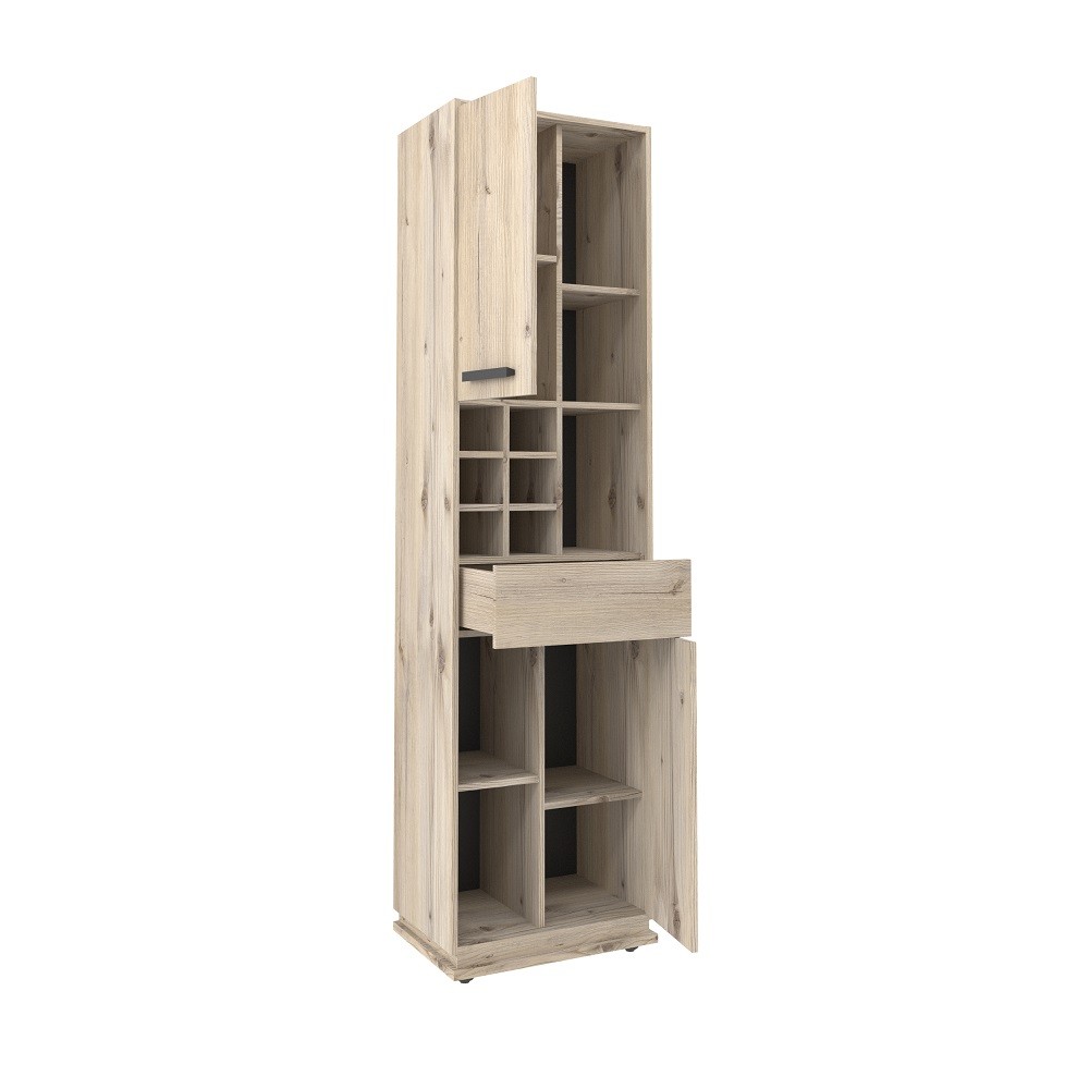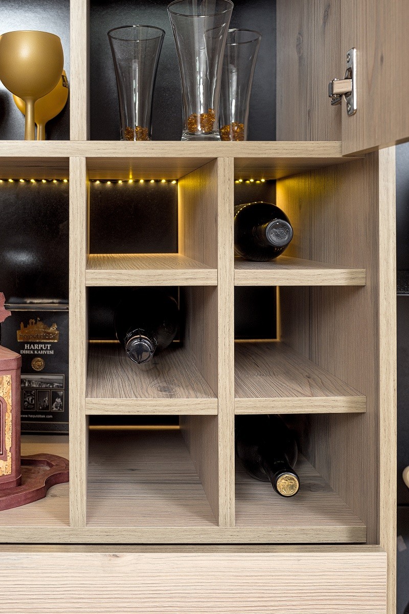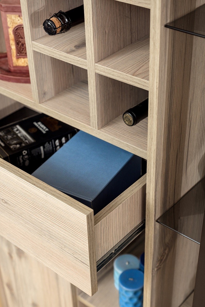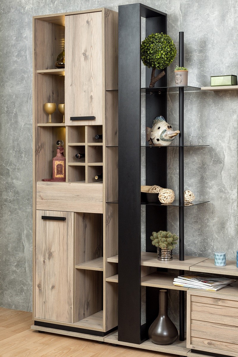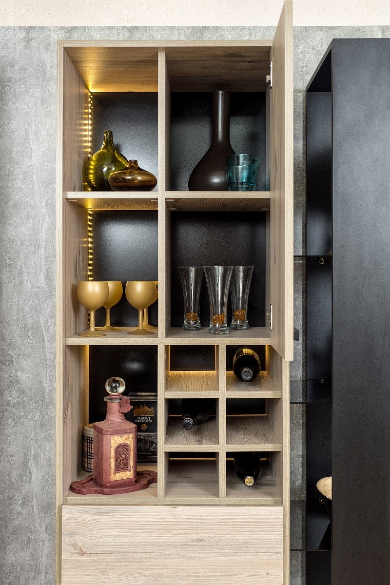 Шкаф NATURE 2 Шкаф МЦН — энотека в современной гостиной NATURE, чтобы порадовать себя и удивить гостей. Коллекция любимых напитков не будет пылиться на полках, в тумбах и шкафах, их можно аккуратно разложить в "барной" нише. Если в Вашей гостиной или квартире-студии достаточно места, то подобное решение для хранения напитков и бокалов — идеальный вариант. Внутри бара создано пространство с полочками и нишами для хранения. Диодная подсветка, которая включается при помощи небольшой кнопки внутри шкафа, эффектно сыграет на стеклянных поверхностях, и гости непременно оценят Вашу винную коллекцию и Ваш вкус.