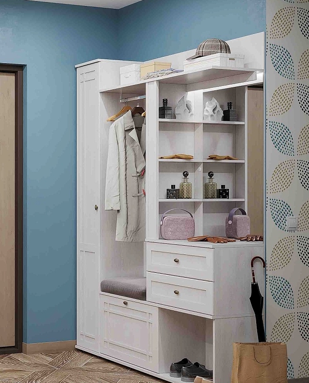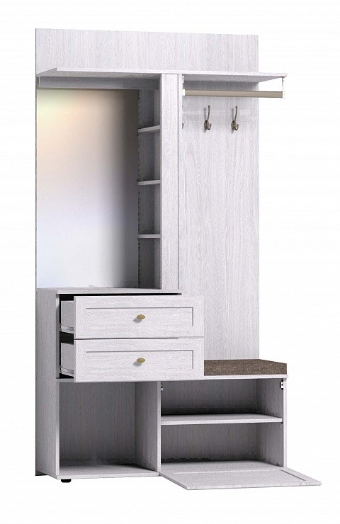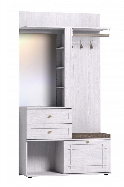 Шкаф МЦН Sherlock 70 - прекрасное решение для организации хранения в малогабаритной прихожей. Несмотря на компактный размер, 112 см в ширину и 40 в глубину, в модели сочетается все необходимое для грамотного планирования входной зоны. Открытая вешалка с крючками и стационарной штангой, полки и ниши за глухими фасадами, ящики и зеркало с подсветкой, которая включается при помощи аккуратного кнопочного выключателя.Штанга выдерживает нагрузку до 25 кг. Уличную и домашнюю обувь Вы сможете разместить в открытой секции под ящиками и закрытой нише за откидной дверцей. Мягкое сиденье входит в комплект и добавляет комфорта при ежедневных сборах на улицу. Sherlock 70 имеет универсальную сборку и может собираться как на левую, так и на правую сторону.