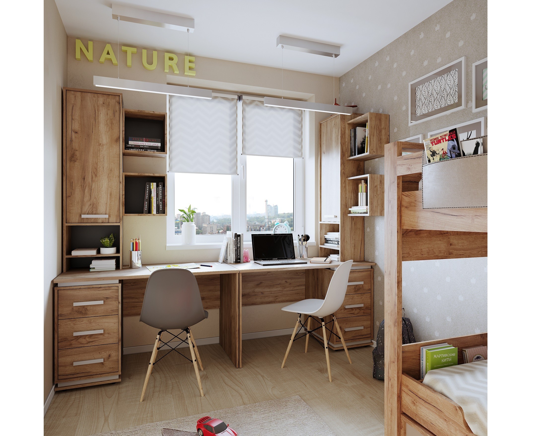 Увеличить площадь рабочего места дляNature 84 Cтол письменныйможно используя дополнительный шкаф-надстройку. Шкаф с глухим фасадом и открытыми нишами станет еще одним помощником ребенку для размещения его книг, рабочих тетрадей и письменных принадлежностей. Глухой фасад шкафа перенавешивается как на правую, так и левую сторону.