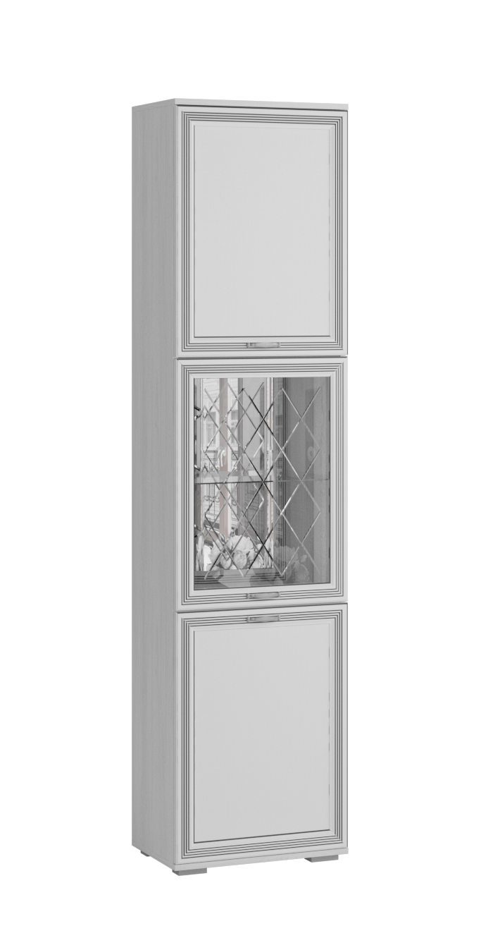 Не знаете, куда поставить сервиз в гостиной? Предлагаем Вам отличное решение - шкаф-пенал с витриной из коллекции Ливорно. Визитной карточкой модуля выступает задняя зеркальная стенка и стеклянный фасад, украшенный гравировкой в форме ромбов. Полки за глухой дверью пригодятся для тех вещей, которые лучше спрятать от лишних глаз.Данный модуль отлично сочетается с другими шкафамиЛиворно.