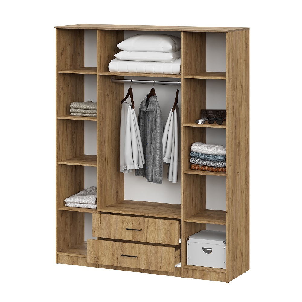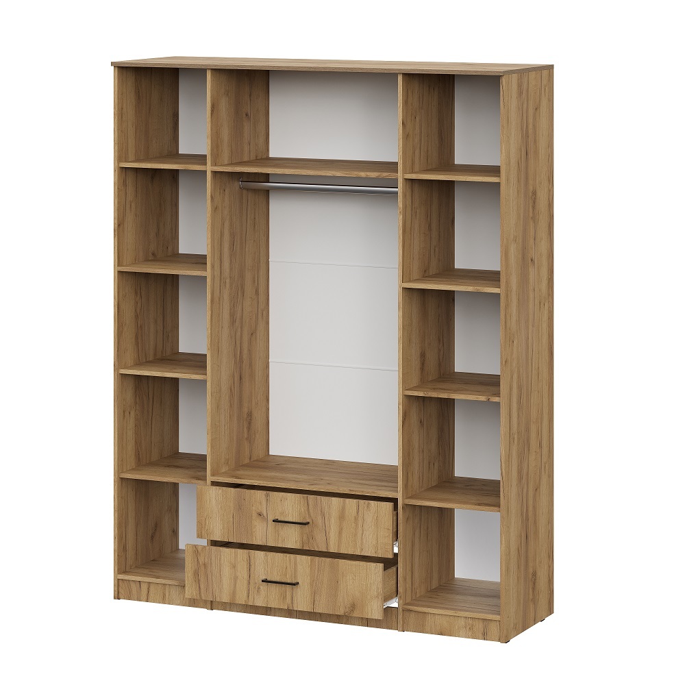 Вместительный шкаф для одежды ШК 1 (Серия 2) выполнен в приятном декоре, имитирующем текстуру древесного спила. Разноплановое наполнение шкафа позволит Вам разместить все вещи и хранить их в полном порядке: одежду на плечиках на продольной штанге, вещи и другой текстиль в сложенном виде - на полках. Два выдвижных ящика пригодятся для белья, аксессуаров и различных мелочей. Тонкие черные ручки добавляют изделию стиля и выглядят оригинально.