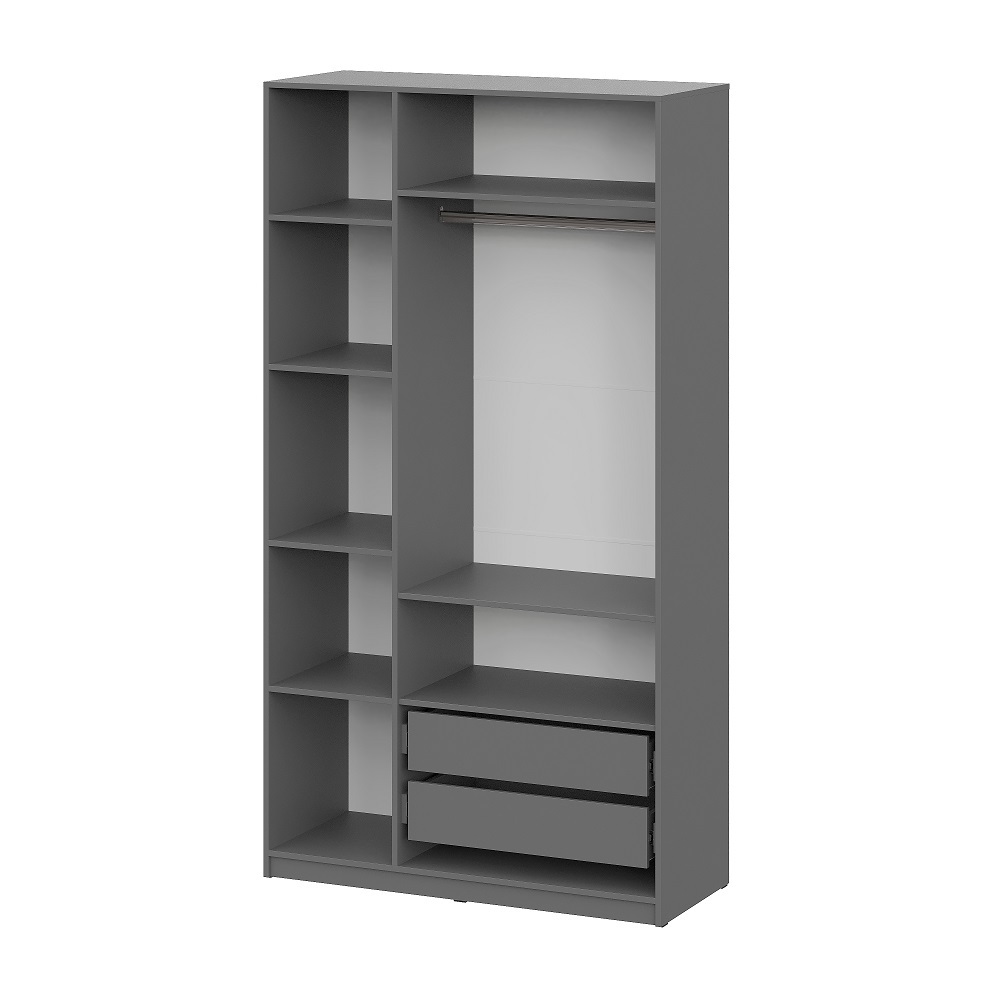 Шкаф оснащен вместительными полками, ящиками и вешалкой-штангой.