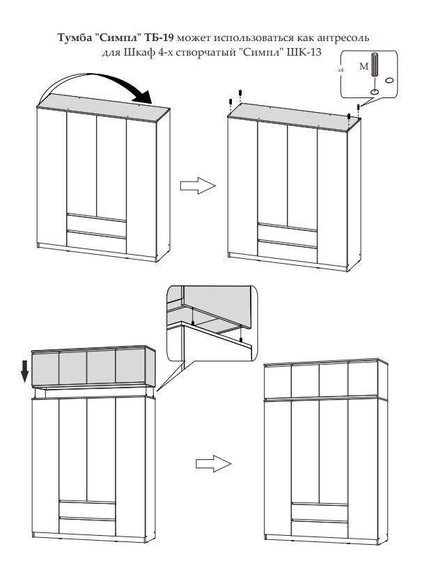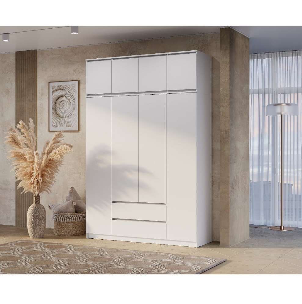 Мечтаете о большом вместительном шкафе, в который поместятся одежда на плечиках, вещи в сложенном виде, аксессуары и другие вещи? Обратите внимание на шкаф Симпл ШК-13 с антресолью. Наполнение модуля - две закрытые ниши, три стационарные штанги и два выдвижных ящика. Цветовая гамма шкафа визуально увеличит пространство и позволит вписать модуль в любой современный интерьер.