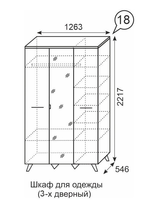 Шкаф прямой 3 дверный