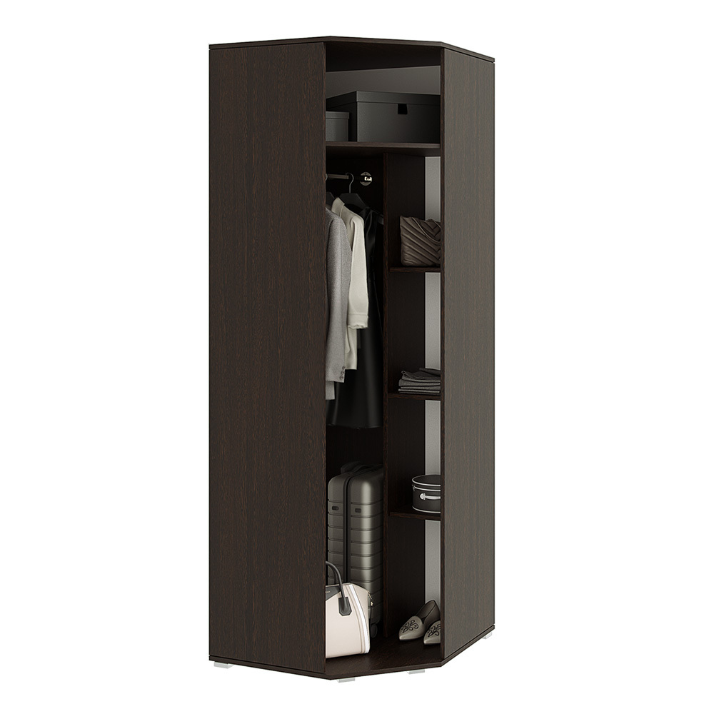 Рационально использовать пространство в комнате, при этом организовать хранение гардероба поможет угловой шкаф Белла. Внутренне наполнение со штангой и многочисленными полками позволит разместить, одежду и обувь. Особенности: — Материал каркаса: ЛДСП — Материал фасада: ЛДСП — Штанга для вешалок в комплекте — Максимальная нагрузка на полку: 10 кг — Максимальная нагрузка на штангу: 10 кг