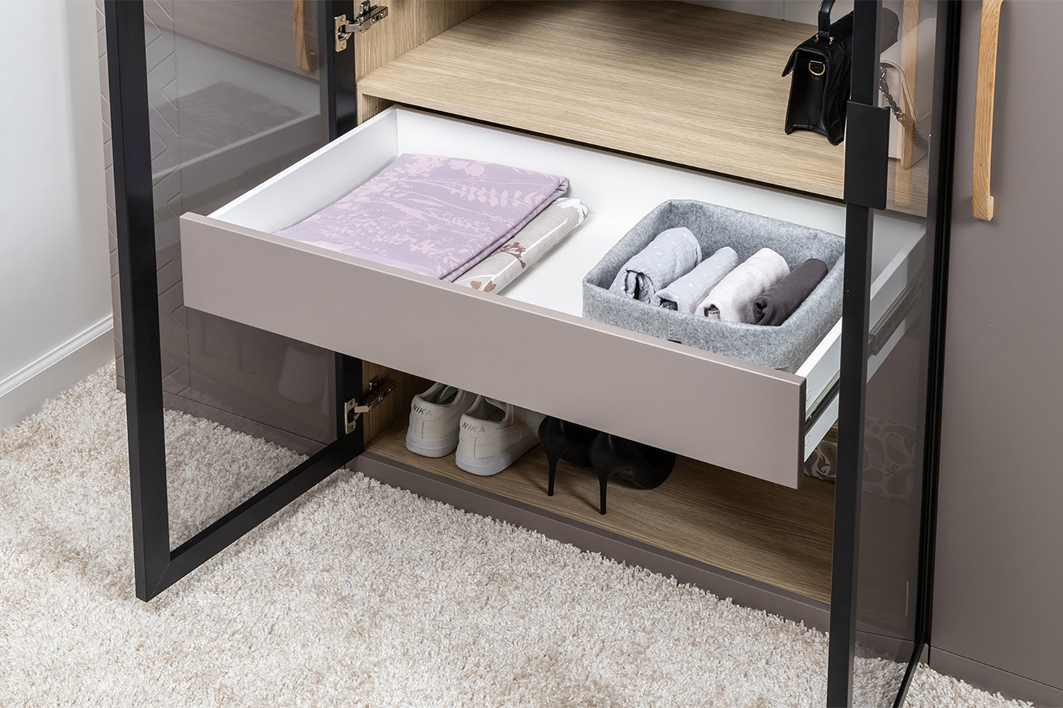 Шкаф-витрина Амьен - это стильное и функциональное решение для вашего интерьера. Его элегантный дизайн и современная отделка создают атмосферу свежести и простора. Этот шкаф оборудован удобными распашными дверьми с ручками, а также выдвижными ящиками на шариковых направляющих.