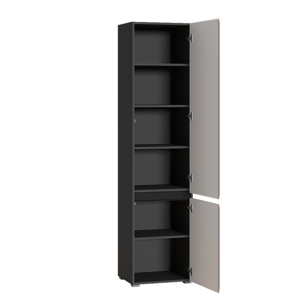 Шкаф «Сидней 13.200» — это стильный и функциональный элемент интерьера, который станет отличным дополнением к любой гостиной. Он имеет компактные размеры (50 x 41 x 205 см) и современный дизайн, который легко впишется в любой интерьер. Фасад шкафа выполнен из высококачественных материалов: МДФ толщиной 16 мм. Это придаёт шкафу элегантный и изысканный вид, а также делает его лёгким и воздушным. Чёрные горизонтальные вставки между фасадами добавляют контрастность и делают шкаф более интересным. Внутреннее пространство шкафа разделено на две секции: верхнюю и нижнюю. В верхней секции расположены три полки, которые обеспечивают достаточно места для хранения различных предметов. Нижняя секция оснащена одной полкой, что позволяет удобно разместить крупногабаритные предметы. Двери шкафа открываются с помощью удобных и надёжных механизмов, которые обеспечивают плавное и бесшумное движение. Универсальная сборка позволяет выбрать сторону открывания дверей, что делает шкаф ещё более удобным в использовании.