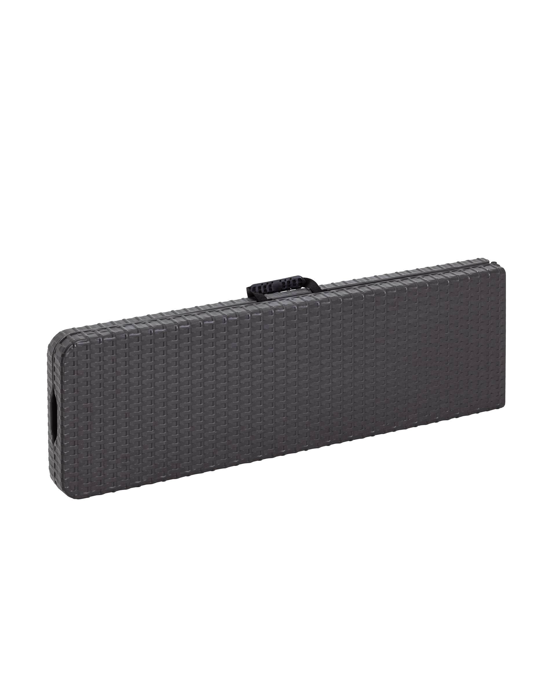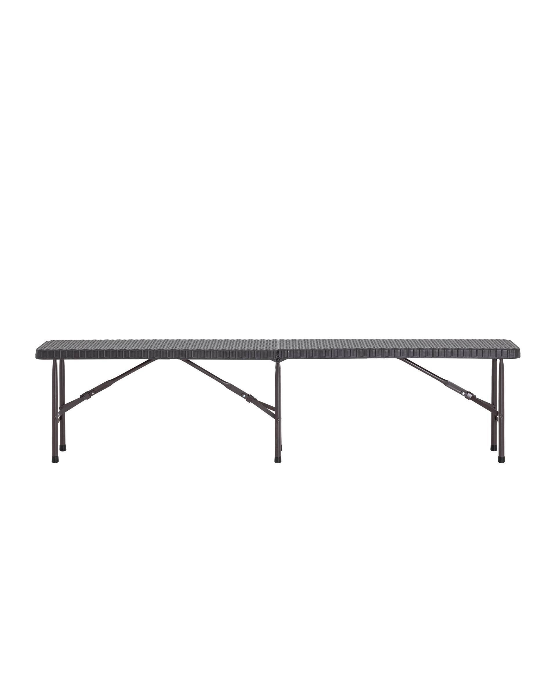 Пластиковая складная скамья с дизайном ротанга украсит собой любой дачный участок или летнее кафе. Данная скамья с комфортом разместит 3-4 человека. За ней легко ухаживать и она не боится дождя. Она очень устойчивая и её легко перевозить. При этом складная скамейка с дизайном ротанга всегда смотрится стильно и респектабельно.