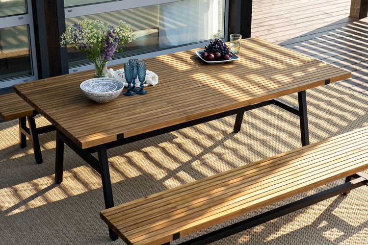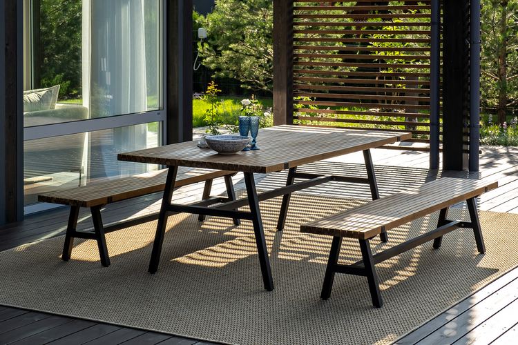 Материал — алюминий, цвет каркаса серый в сочетании массива акации, отделка экомаслом