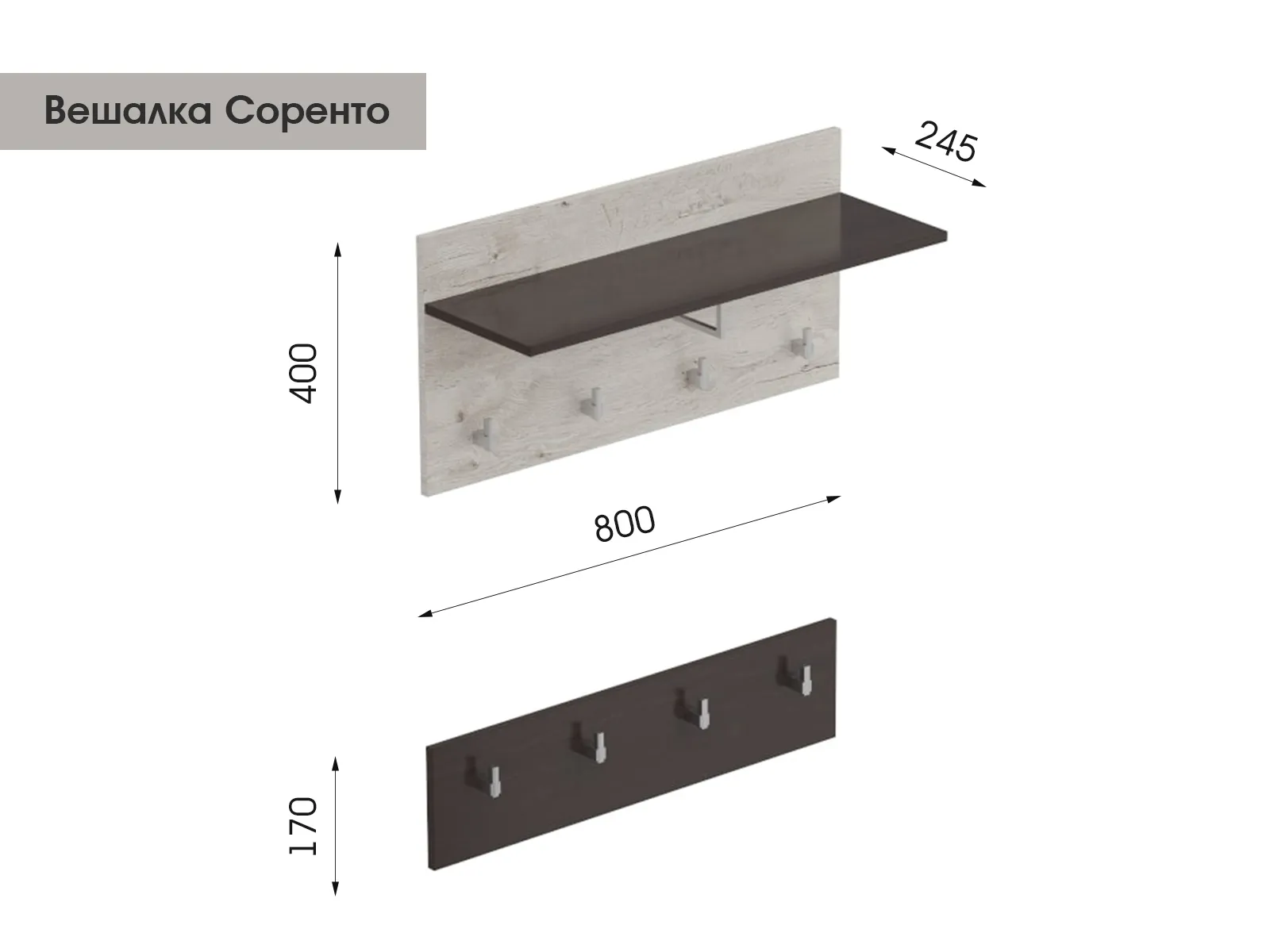 Главными ориентирами при подборе мебели для прихожей являются практичность и надежность. Мы добавили к этому списку еще и безупречную эстетику — вся мебель отвечают актуальным трендам и расширяют возможности для создания уникального пространства. Вешалка «Соренто» — отличный вариант и для маленькой, и для большой зоны. Модель не займет много места, при этом функциональность точно не пострадает, а за счет универсального цветового исполнения она хорошо будет гармонировать с другими оттенками в отделке и меблировке.