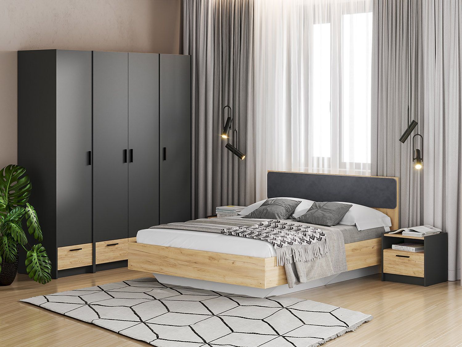 Спальня Оттавия 4 Антрацит / Дуб золотой - вместительный и комфортный набор для современной спальной комнаты.