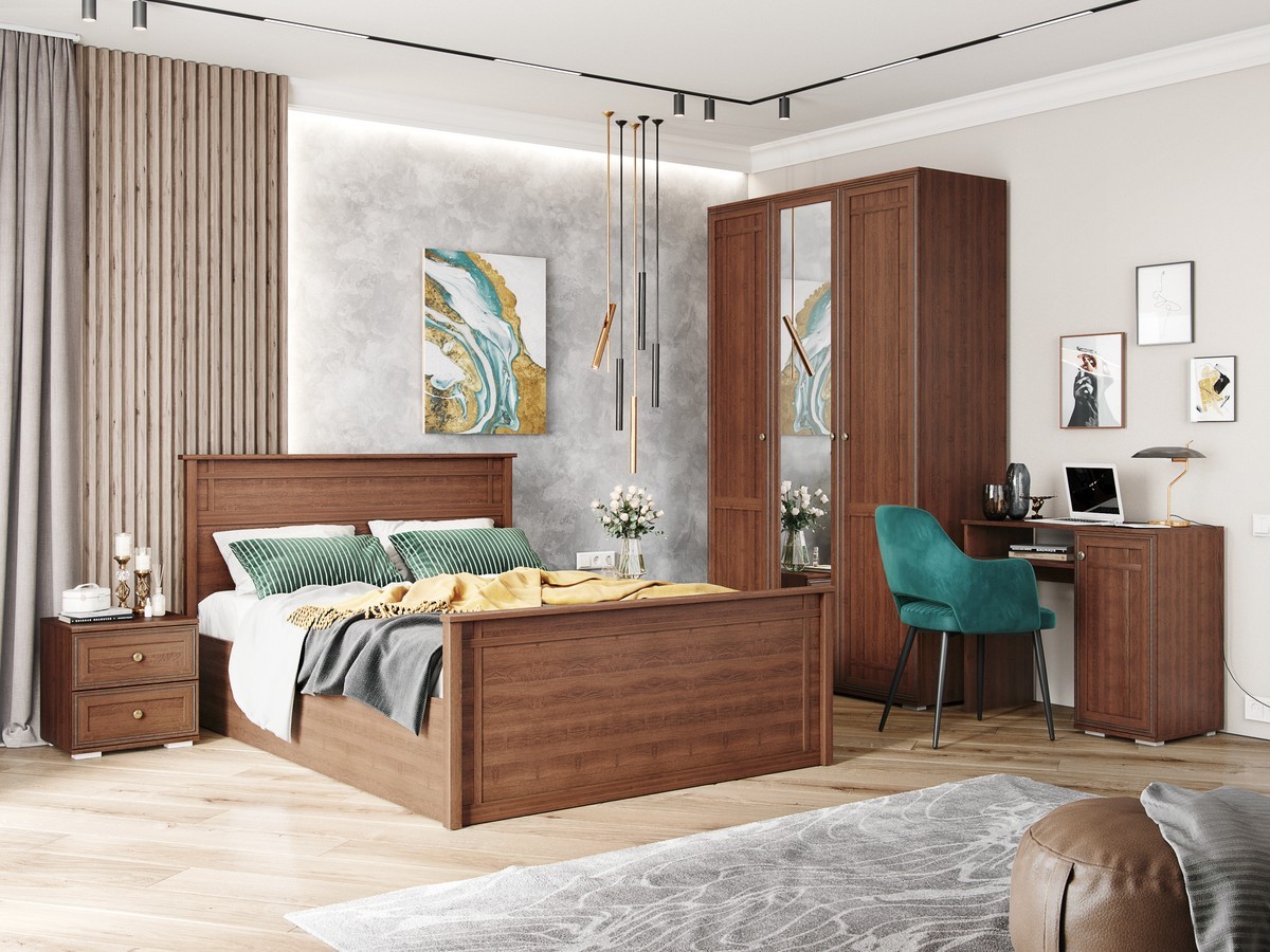 Коллекция мебели для спальни "Ричард" создает естественную и уютную атмосферу, поднимающую настроение и радующую взор. Благородство патины и подчеркнутый объем филенок придают фасадам лаконичный и респектабельный вид. Модульная программа представлена двумя цветами: Орех Донской и Ясень Анкор Светлый. Нежные оттенки натурального дерева эффектно подчеркивают великолепие спального гарнитура, вплетая в него природную айдентику. Впечатление солидности, надежности производит фурнитура: петли с доводчиками для бесшумного закрывания, шариковые направляющие полного выдвижения. Обращают внимание кровати с надежной и функциональной конструкцией, представленные в этой программе двумя размерами: 1,4 и 1,6 метра.