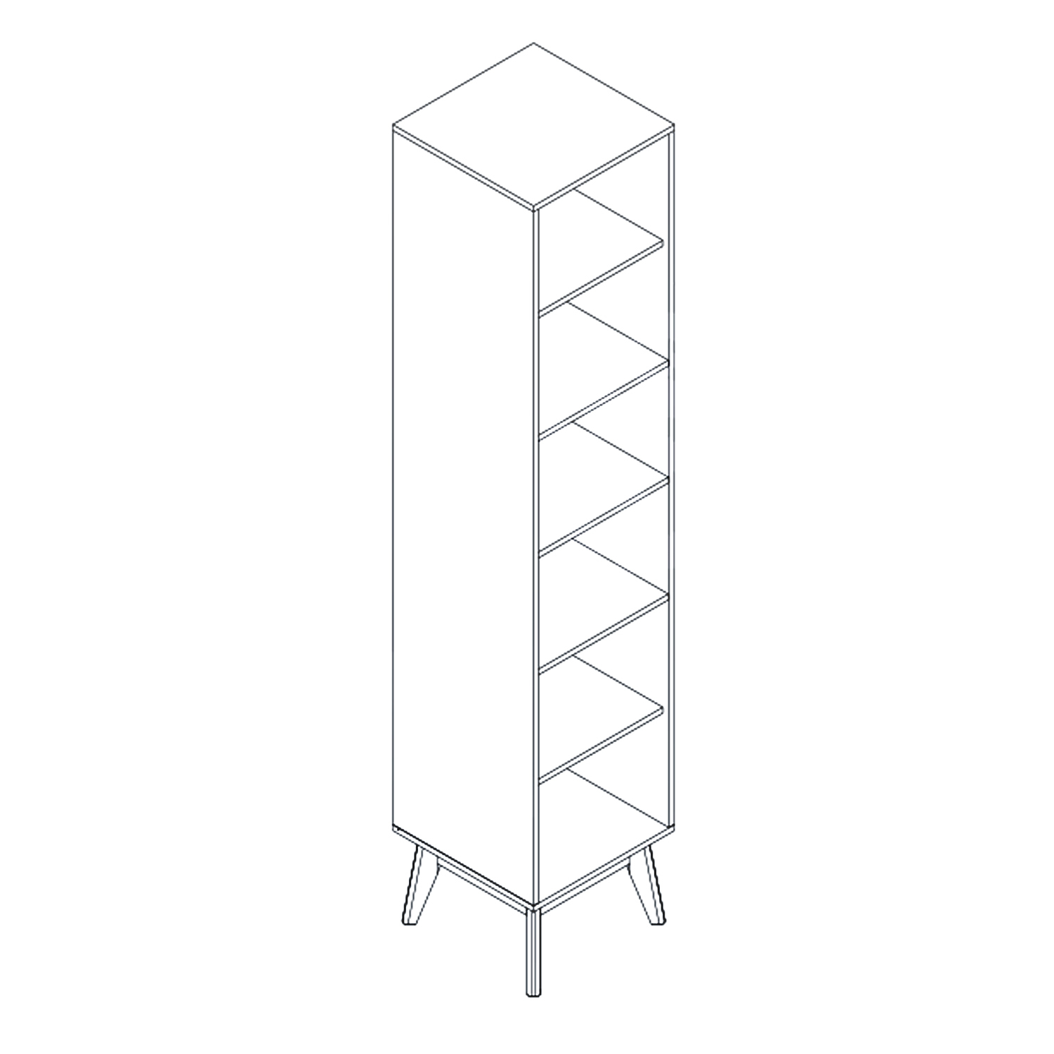 Стеллаж с вкладными боками соединенные полками, разделен на три отделения: верхнее и нижнее закрыто дверями, а в центре расположена открытая полка.